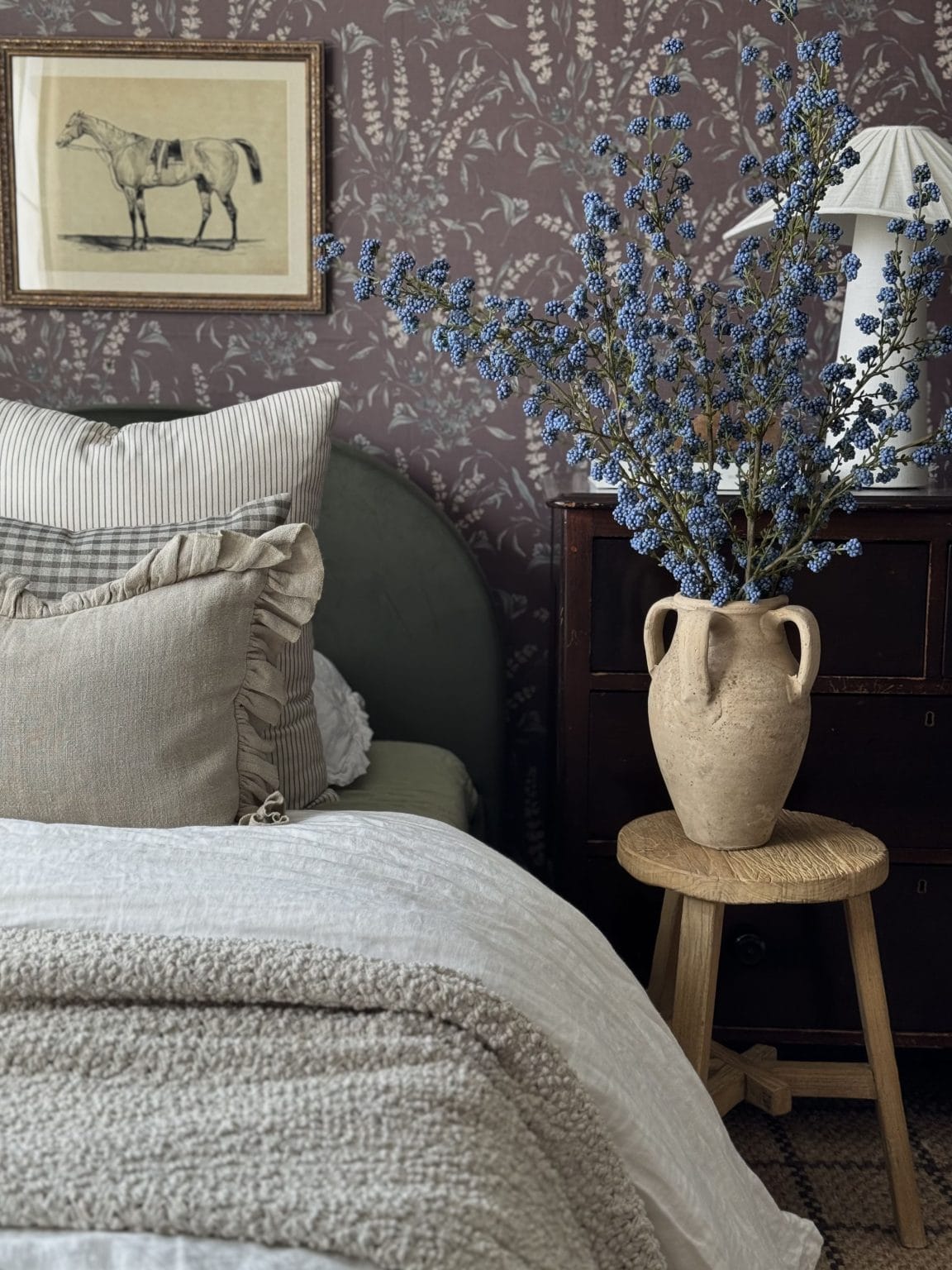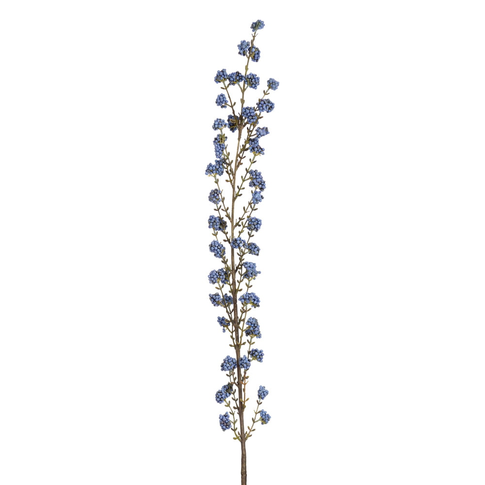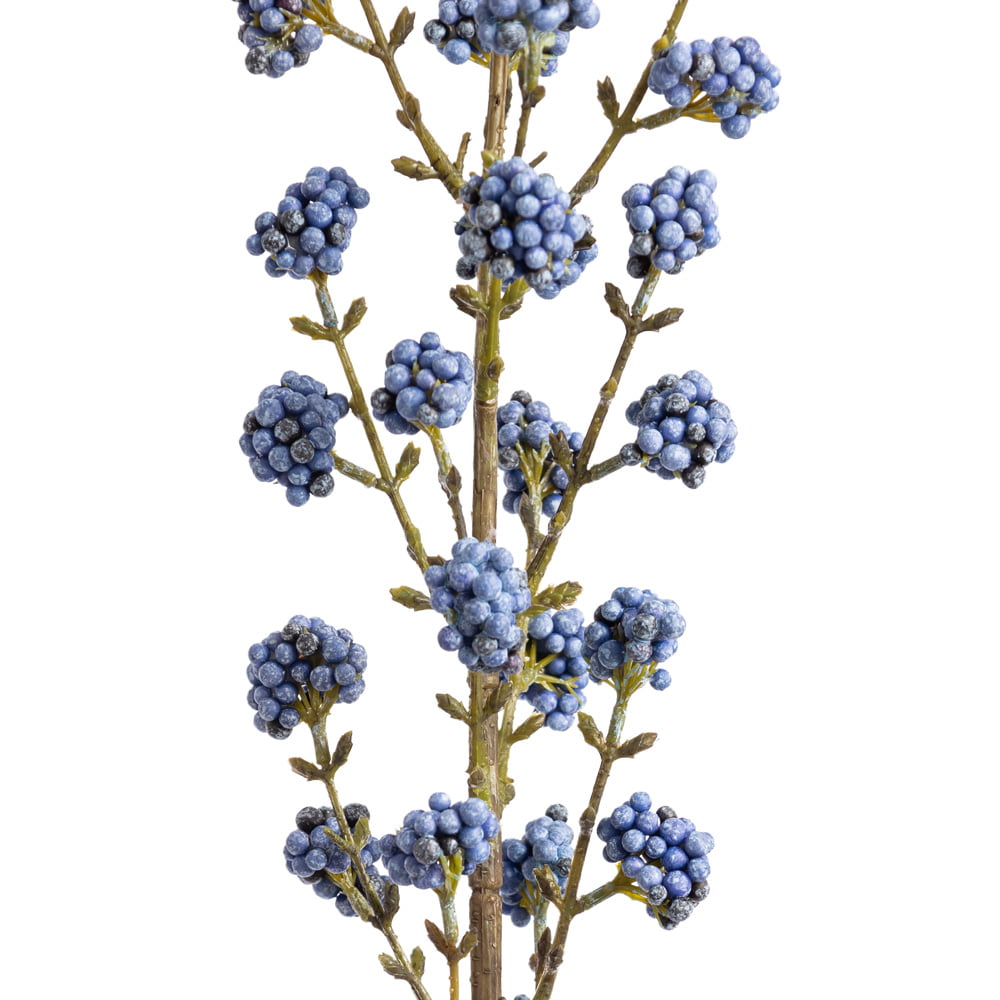 Artificial blue callicarpa flower, 47”. This Christmas branch is adorned with small, lifelike blue berries that capture the unique beauty of the callicarpa, also known as “beautyberry”.