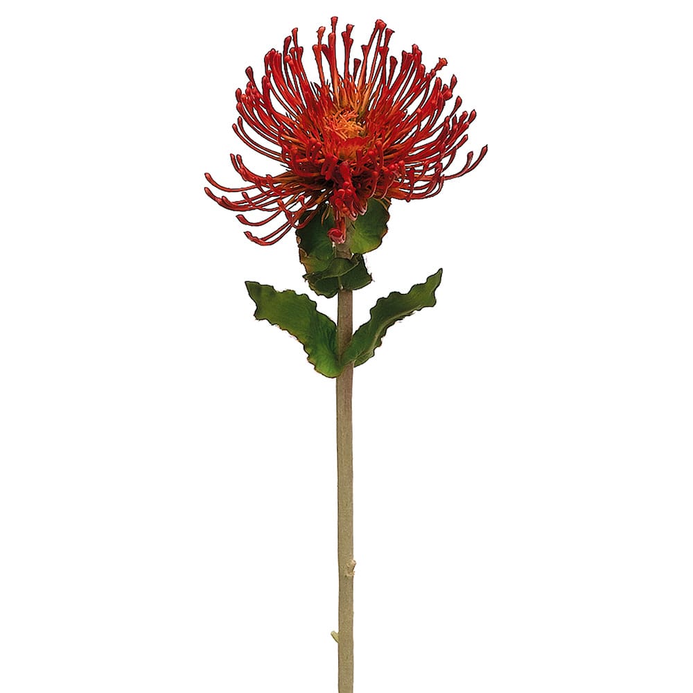 Dark orange pincushion protea artificial flower, 26”. This Leucospermum protea, also known as pincushion, is a favorite in tropical flower arrangements! Its orange hue has earned it many compliments.