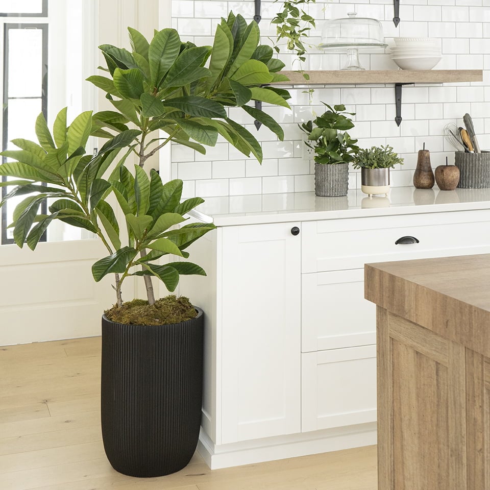 Artificial elaeocarpus tree, 66,5”. The ideal no-maintenance potted plant, made from a realistic stem and lifelike foliage. This artificial plant is both classy and trendy with beautifully designed greenery ! To clean your artificial tree, simply use our Magik Klean spray.