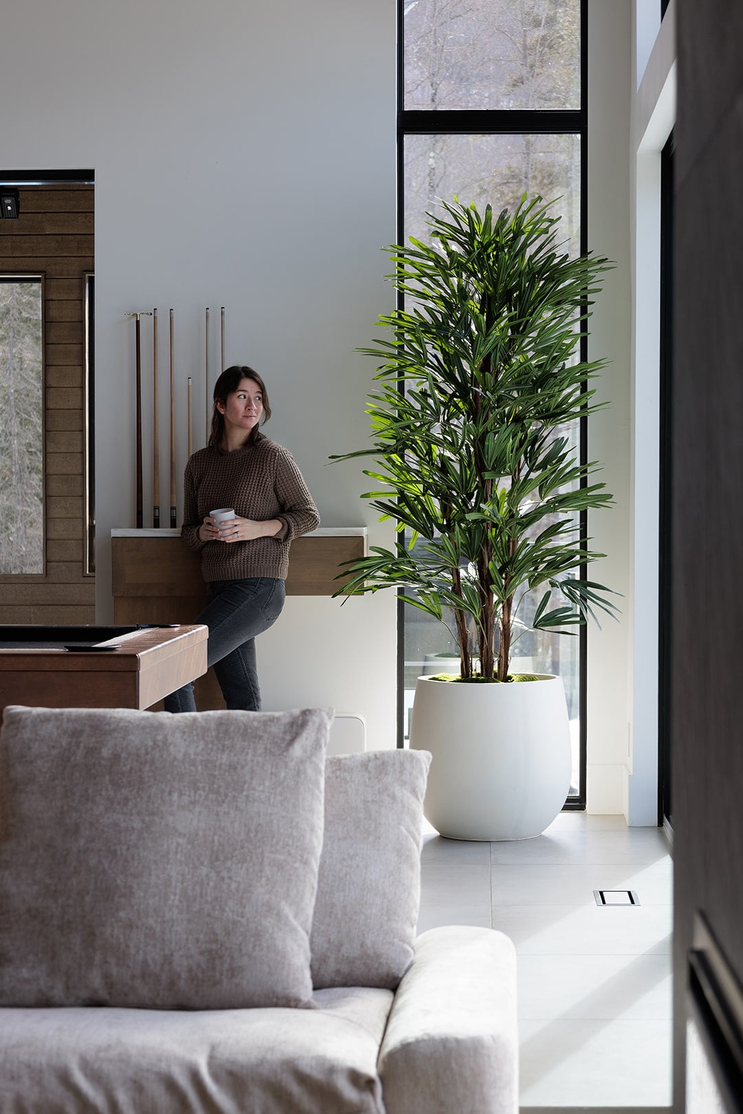 The raphis is a palm tree native from Asia. This 7 feet tall plant is also called bamboo palm because of its multiple palms which have similarities with the leaves of some varieties of bamboo. Unlike tropical palms, this one has a dense appearance that starts from the base of its trunk. It is therefore a green plant that will certainly please the undecided!