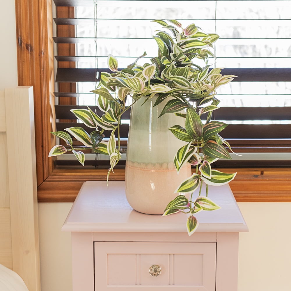 Artificial Wandering Jew plant with redding-purple tones in its foliage. If you love plants with unique foliage, you’ll definitely fall for this plant!