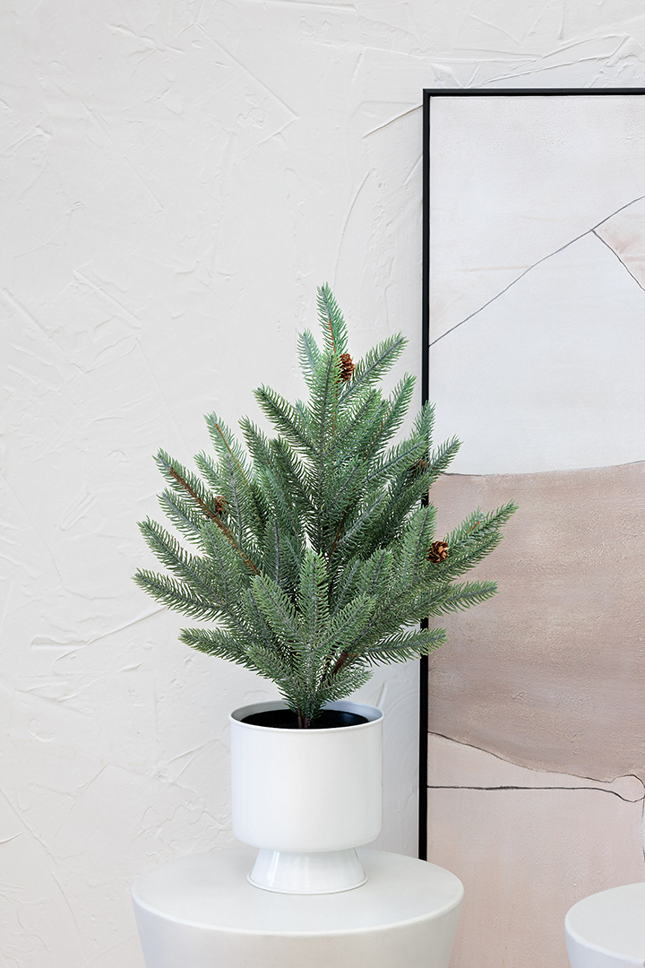 Artificial potted spruce, 22''. This mini Christmas tree is great to bring the holiday spirit in your home all in delicacy. Its size is ideal to be placed on a desk or on the top of a shelf for example!