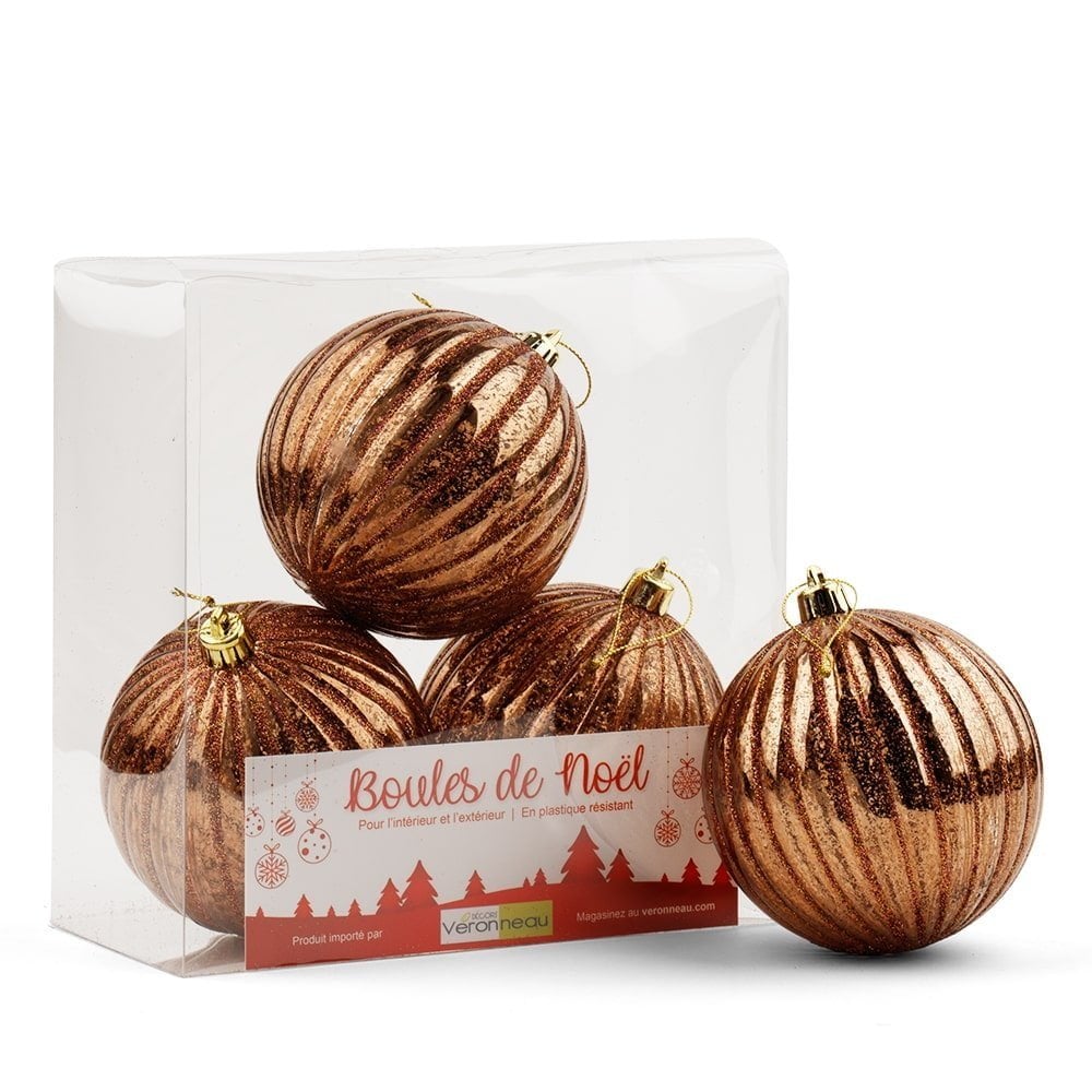 AccueilChristmas decorationsChristmas ornamentsGold and copper ornamentsBox of ridged bronze Christmas ball ornaments, 4-8”