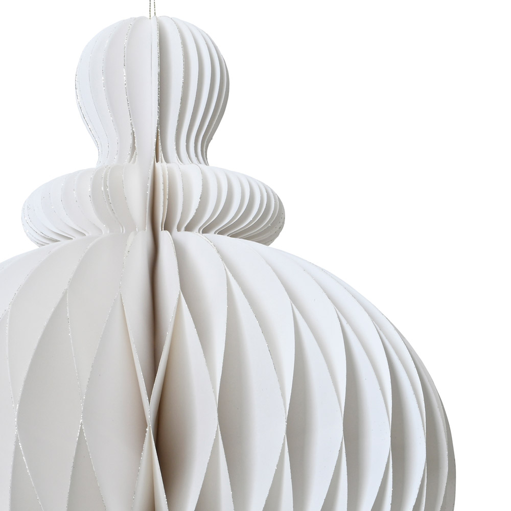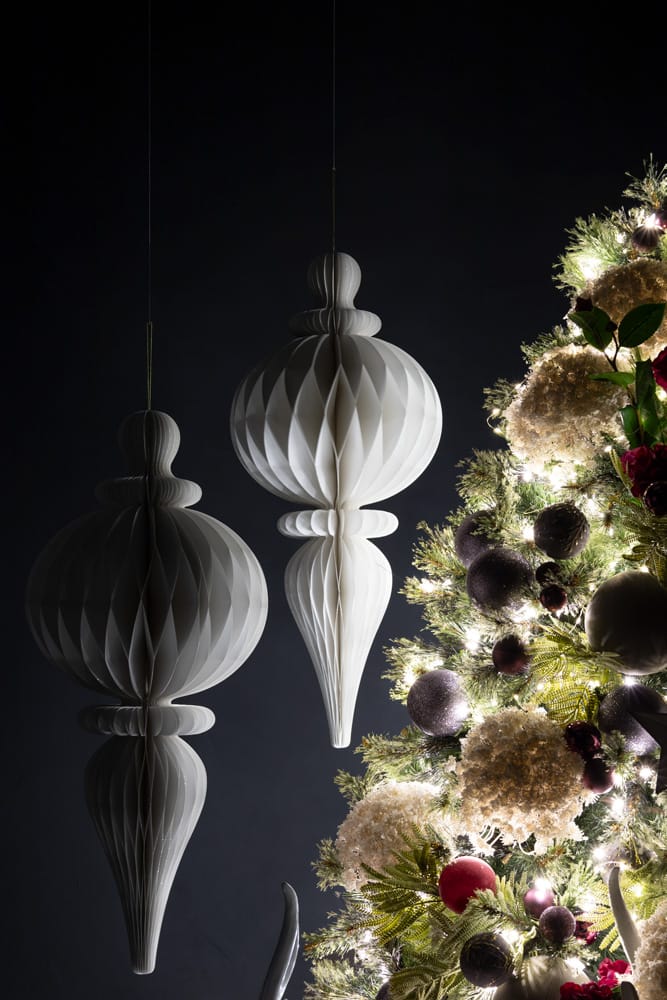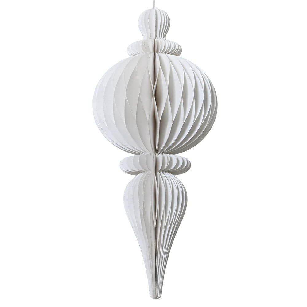 White paper hanging Christmas finial, 31,5”. A must-have for ceiling-hanging Christmas decorations. FSC-certified, guaranteeing that the paper used comes from responsible, sustainable sources. Magnetic closure.