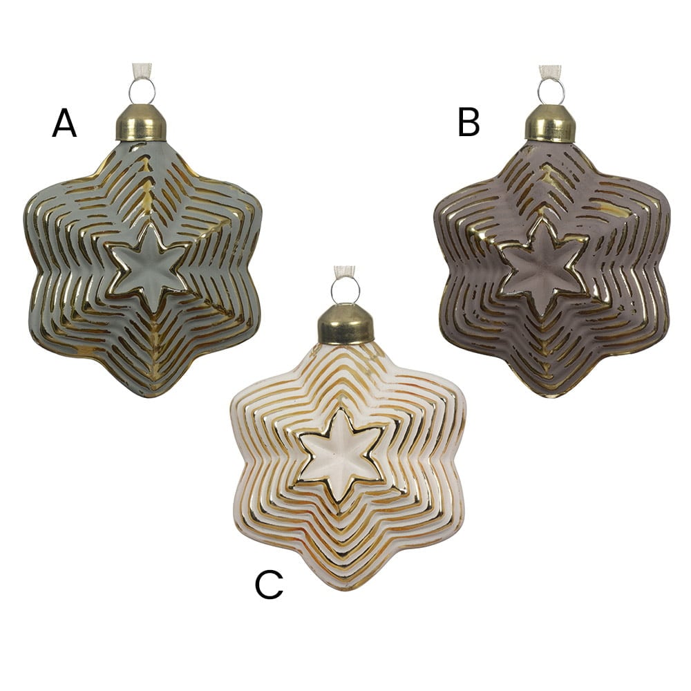 Antique-look star Christmas ornament, 3”. Whether hanging delicately from branches or adorning a garland, this ornament brings a nostalgic touch to your seasonal decorations. Its timeless design evokes memories of Christmases past, making it a cherished piece for years to come. Choose between 3 colors, price per unit.
