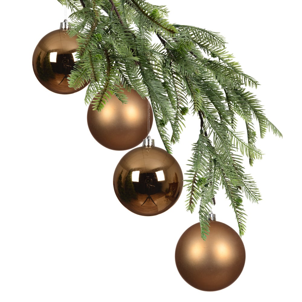 Box of 4 copper-colored Christmas ornaments, matte and gloss finish, 4”. Whether hung on your Christmas tree, arranged in a decorative bowl on your coffee table, or integrated into a door wreath, these baubles will bring a subtle, festive glow to your home.