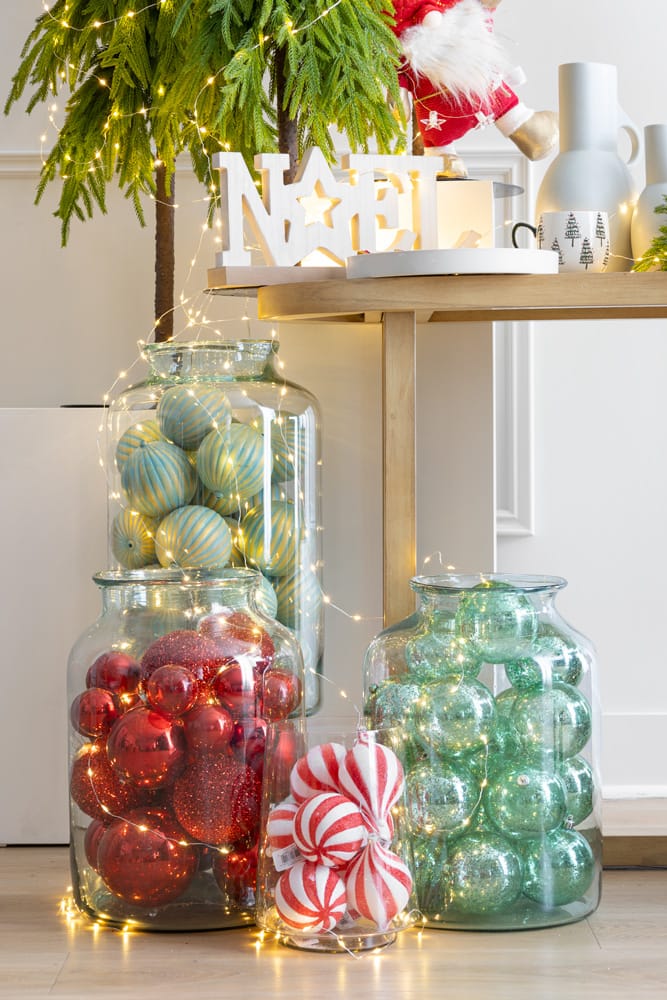 4 antique blue striped Christmas ornaments, 4”. These Christmas balls are perfect for adding an old-fashioned element to your festive decor. Available in 4 colors.
