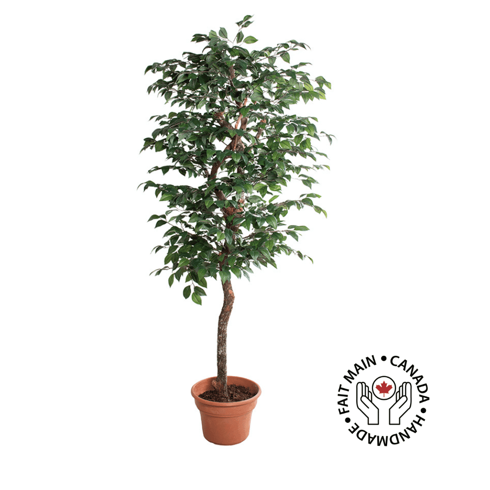 Merci pour votre avis et d’encourager une entreprise d’ici! Il faut savoir que notre gamme d’arbres faits main sont fabriqués par nos propres artisans ici à notre atelier de Laval. Ils sont tous uniques et faits à l’aide de vrais troncs d’arbres recyclés et du feuillage de polyester de qualité.