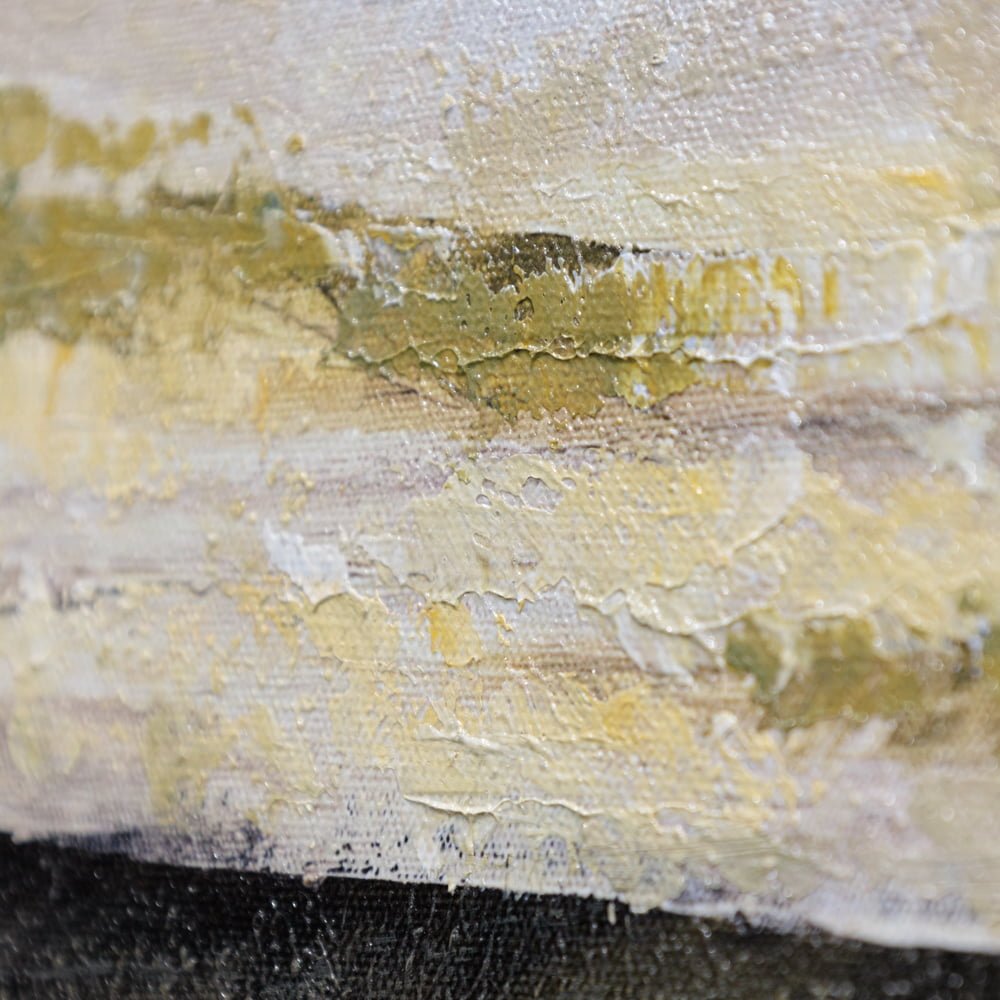 Golden landscape wall art, 32 x 32''. Hang this abstract frame on a plain white wall! You'll give your room an instant lift. Note that this is a printed painting on canvas with painted details. Comes with black MDF frame.