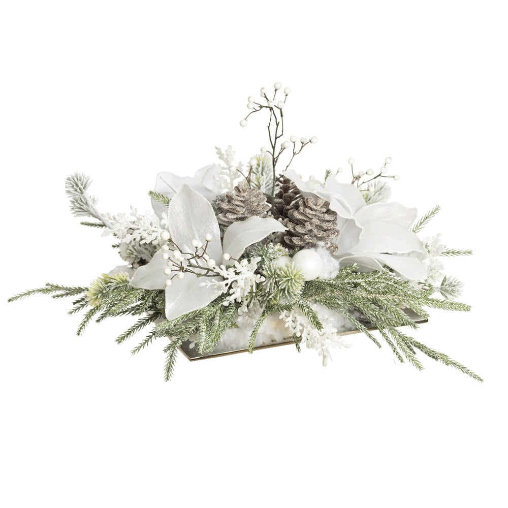 AccueilChristmas decorationsChristmas creationsRustic holiday centerpiece with white hibiscus