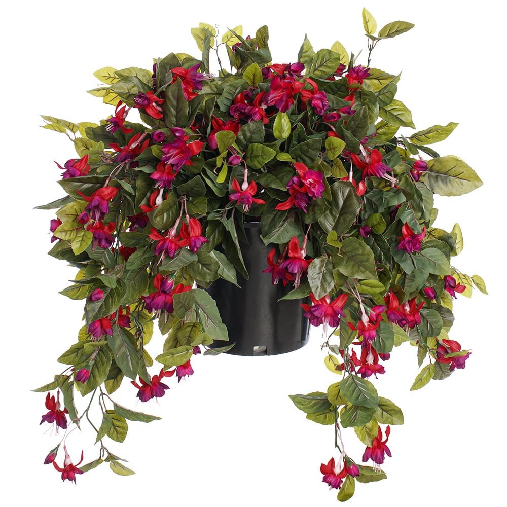 Can we really not fall in love with fuchsia flowers? They are full of color, which makes this plant perfect for summer! There are many ways to use it outdoors: in a window box, hanging planter or even in a pot. Comes in a plastic pot. 100% artificial, no watering, no maintenance.