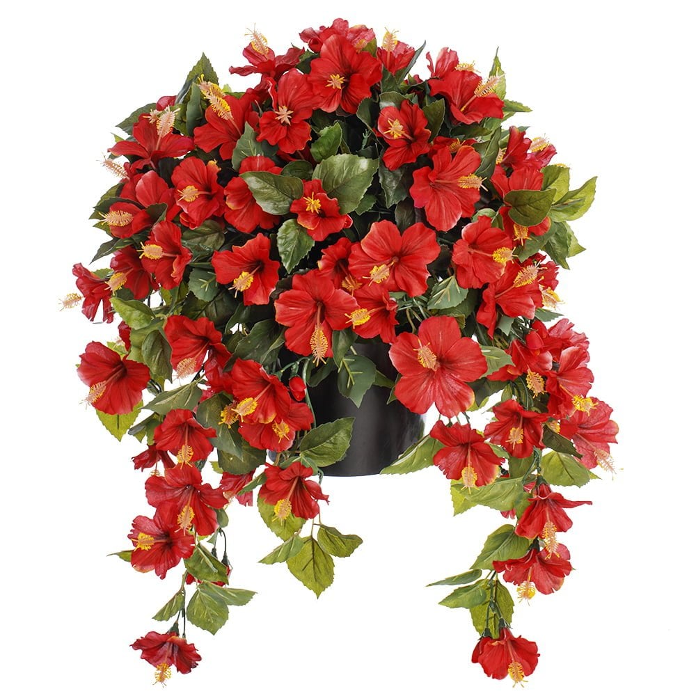 If you love the beauty of red flowers, but don’t have a green thumb or the right location, go artificial flowers! This flower pot is maintenance free and will stay beautiful all season long. Made for outdoor use.