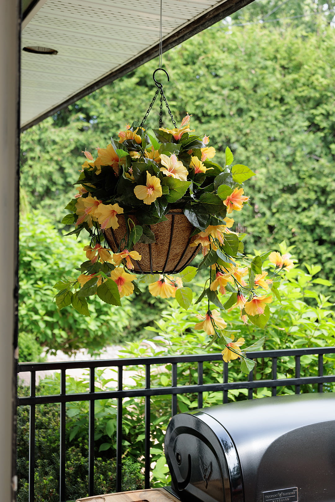With its large yellow blooms and dense foliage, this artificial hanging plant instantly transforms your outdoor space into a welcoming oasis. It never wilts, no matter the sun or heat!
