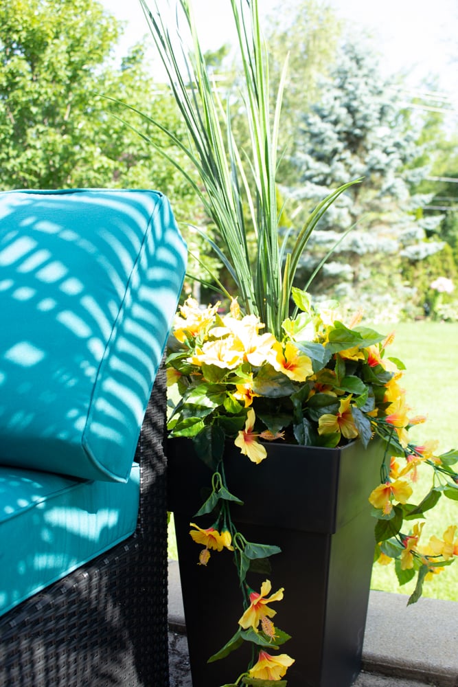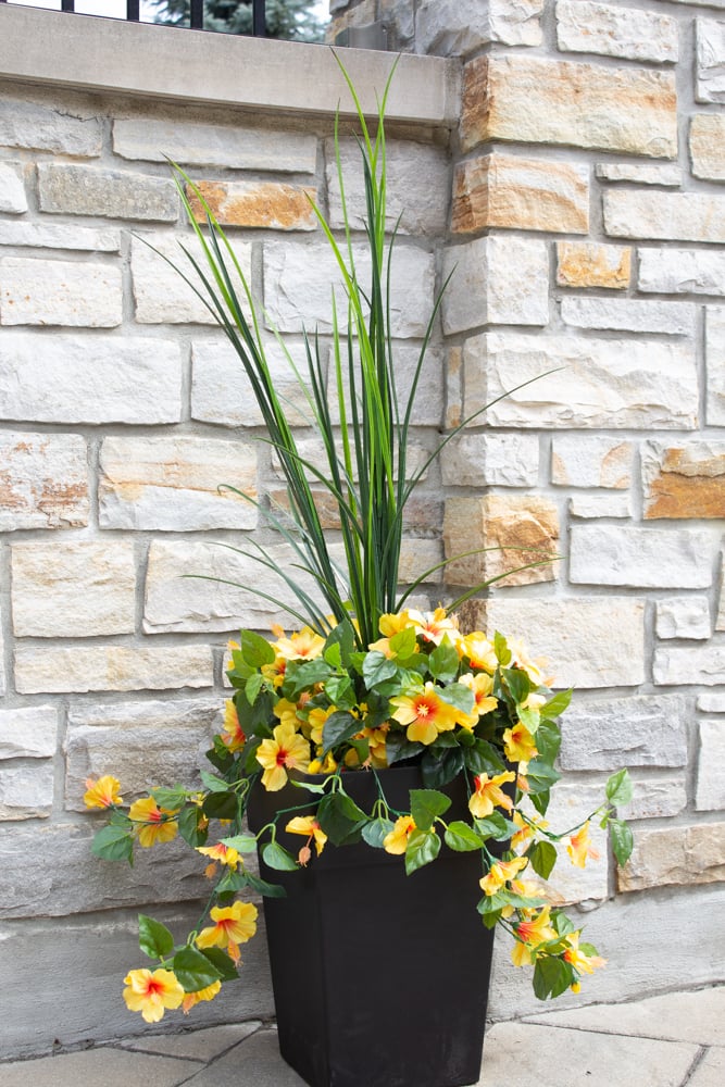 What’s better than beautiful yellow flowers to brighten up your deck ? This artificial hibiscus plant is also maintenance-free, so it will always remain as colorful and beautiful all season !