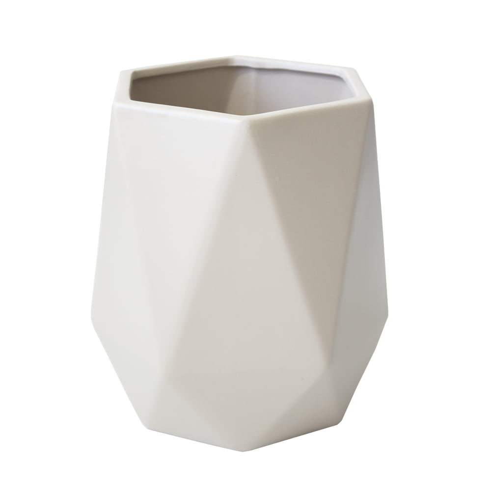 Beige ceramic flower vase, 8 x 5”. This vase is the perfect size for small rounded arrangements.