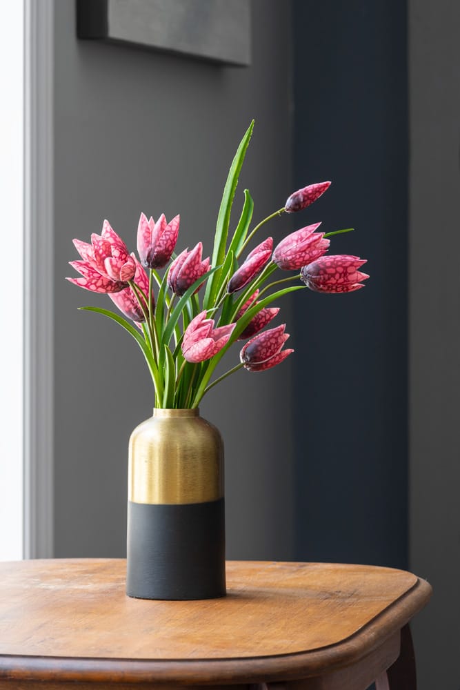Create a vase duo that won’t even need flowers to create its full effect! This black and gold metal model will complete a space like no other! Add a refined, modern touch to your space with this small, eye-catching vase in black and gold metal. Choose from 2 sizes.