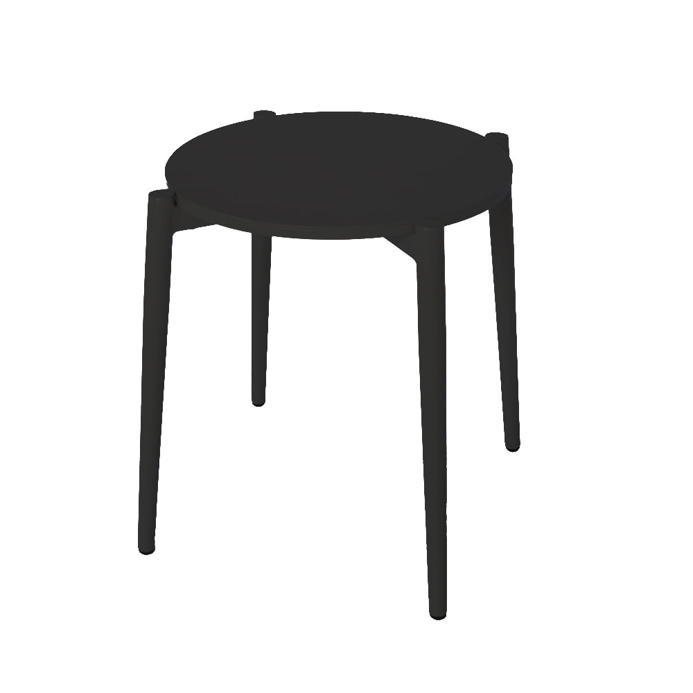 Round aluminum side table, 17.5 x 21.5 x 21.5”. This unique outdoor table will add style to your patio. Its modern design will harmonize perfectly with existing furniture.