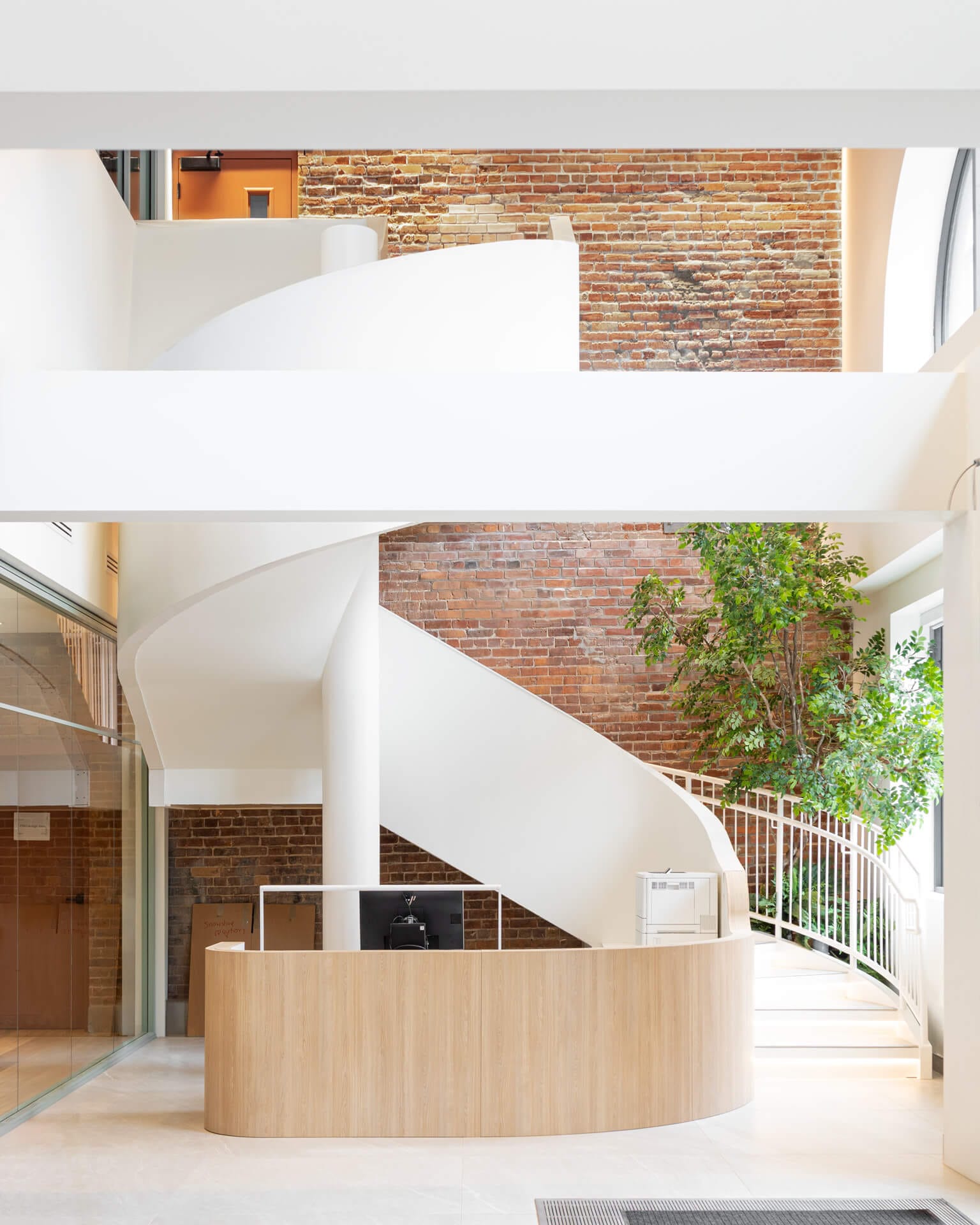 The centerpiece of this design is an oversized tree located in the stairwell, creating a strong and symbolic visual impact, embodying the strength and connection to nature unique to the Cree Nation.