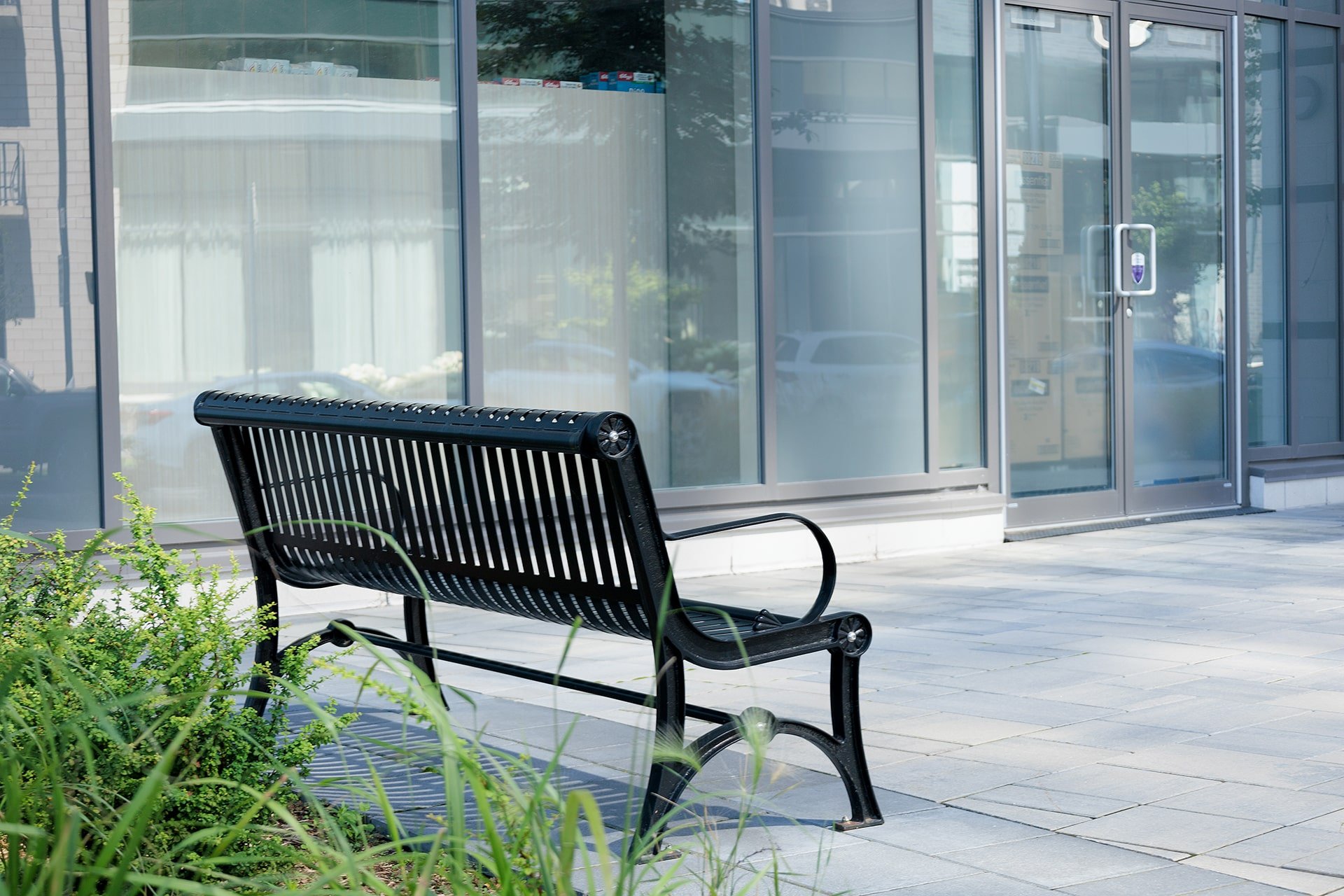 Large selection of urban furniture in IVVI’s private gardens, including composite park benches, high-end rockers and durable tables and chairs.