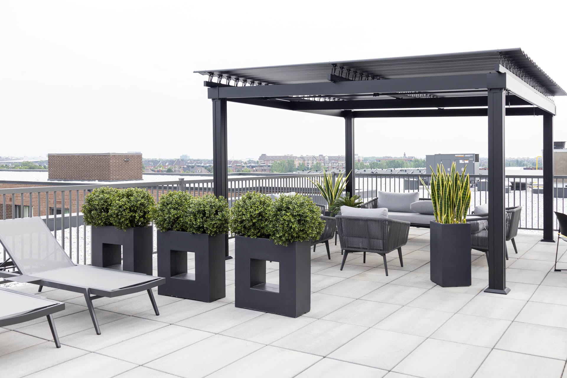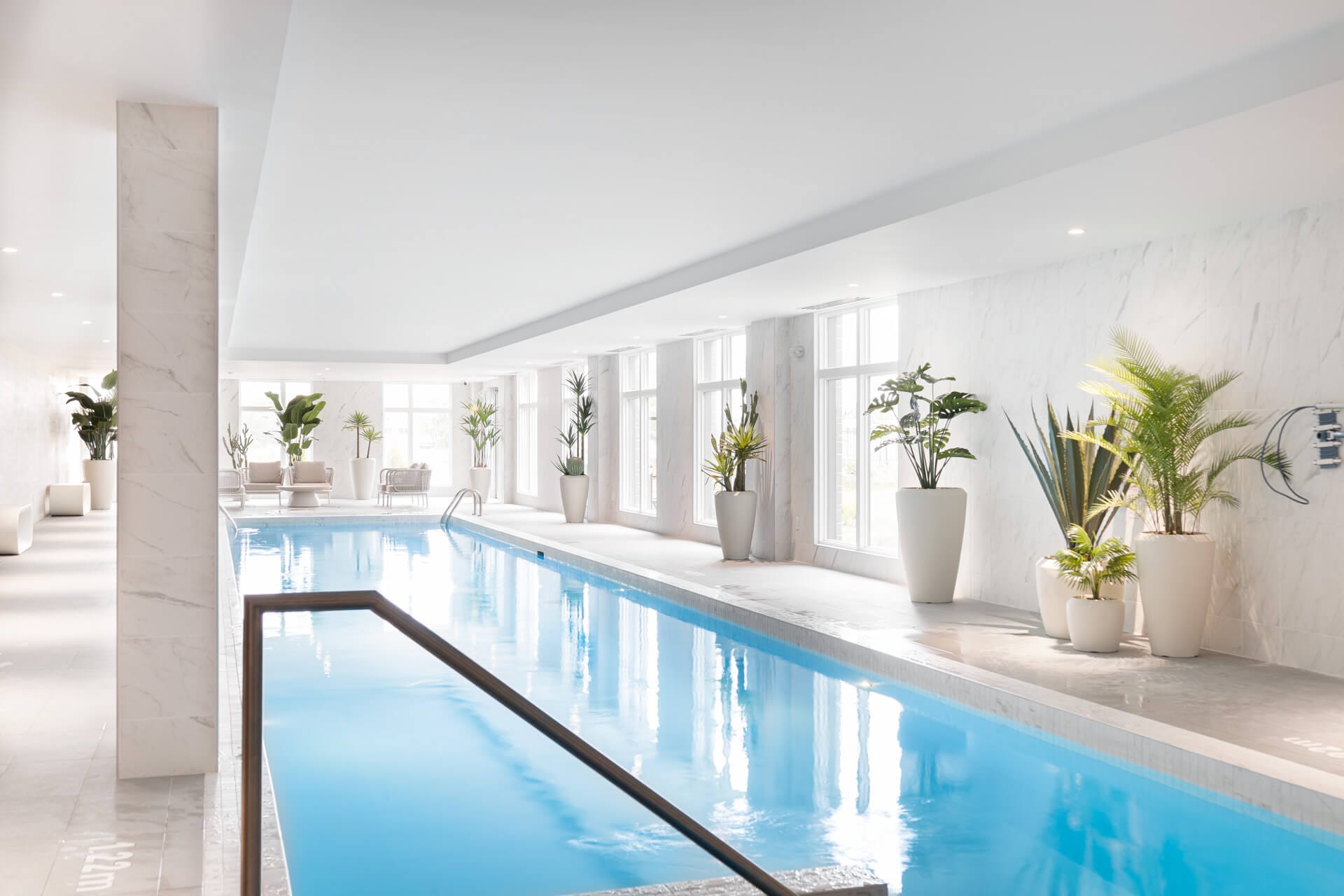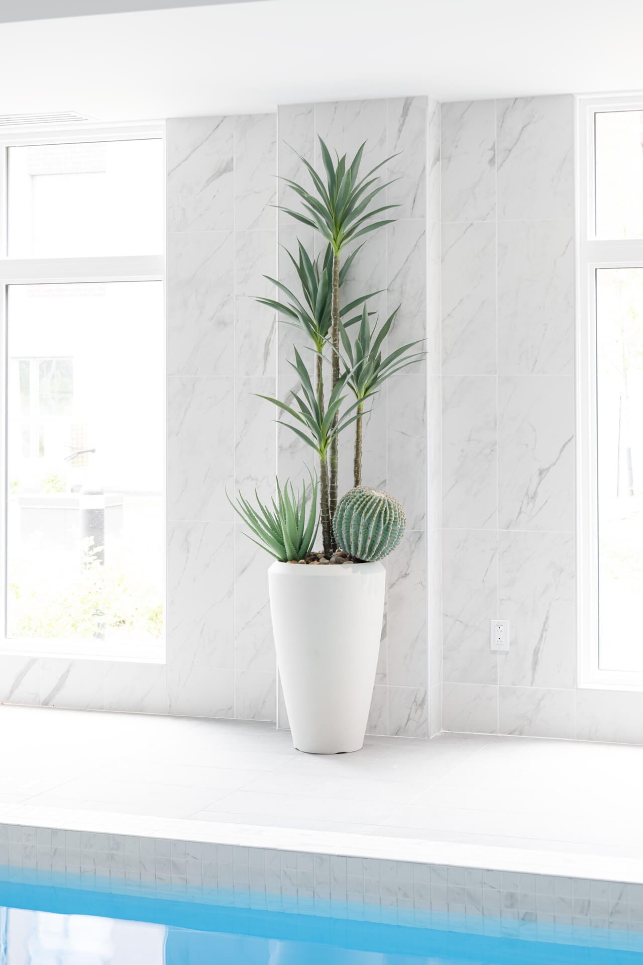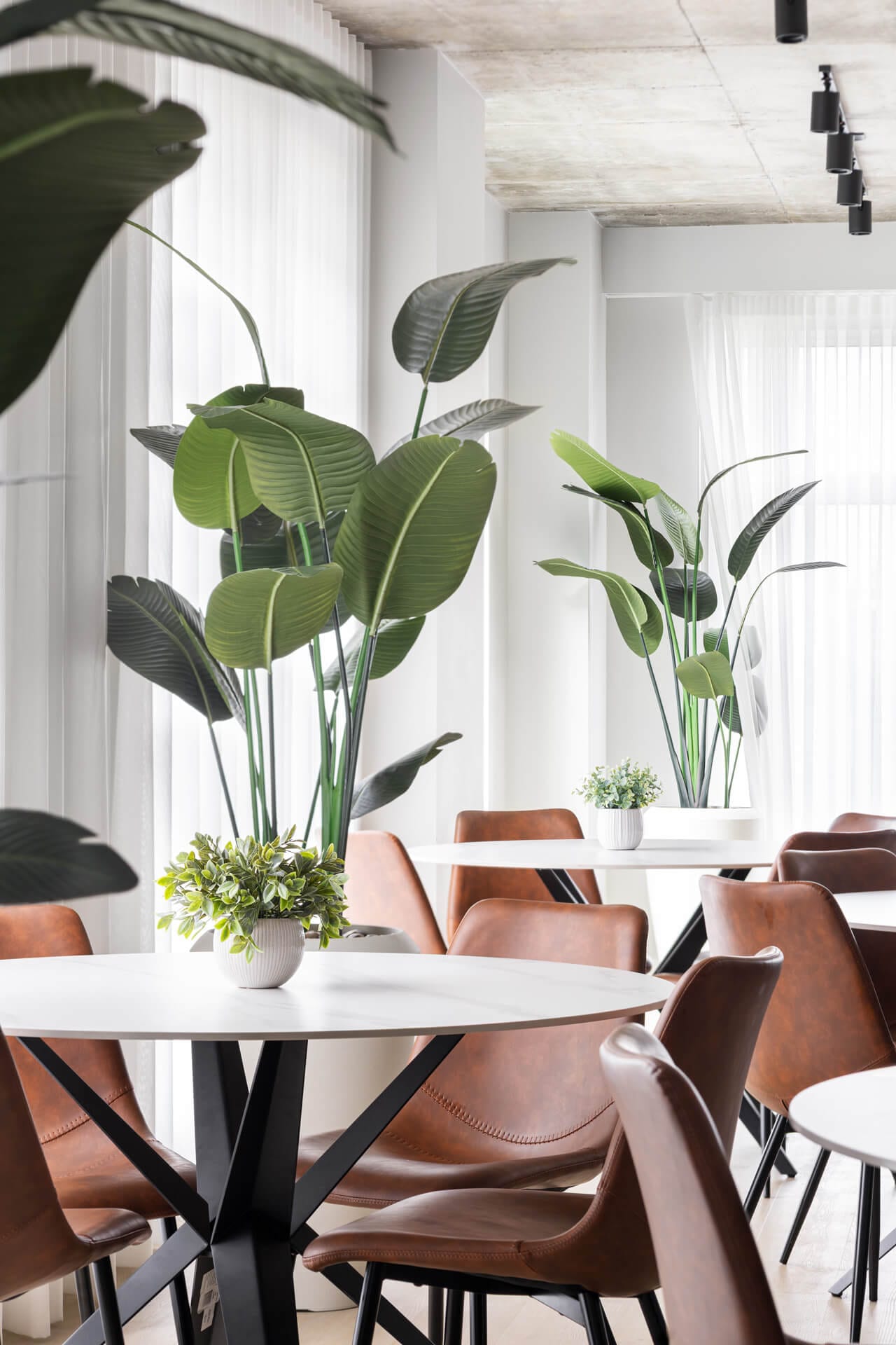 Located in the heart of Saint-Laurent, Montreal, Liveo Bois-Franc is a modern rental condo complex that combines architectural elegance, comfort, and style. From the moment you step inside the building, we wanted to create a striking first impression. The naturally lit lobby is perfectly suited to showcasing realistic artificial plants with varied foliage.