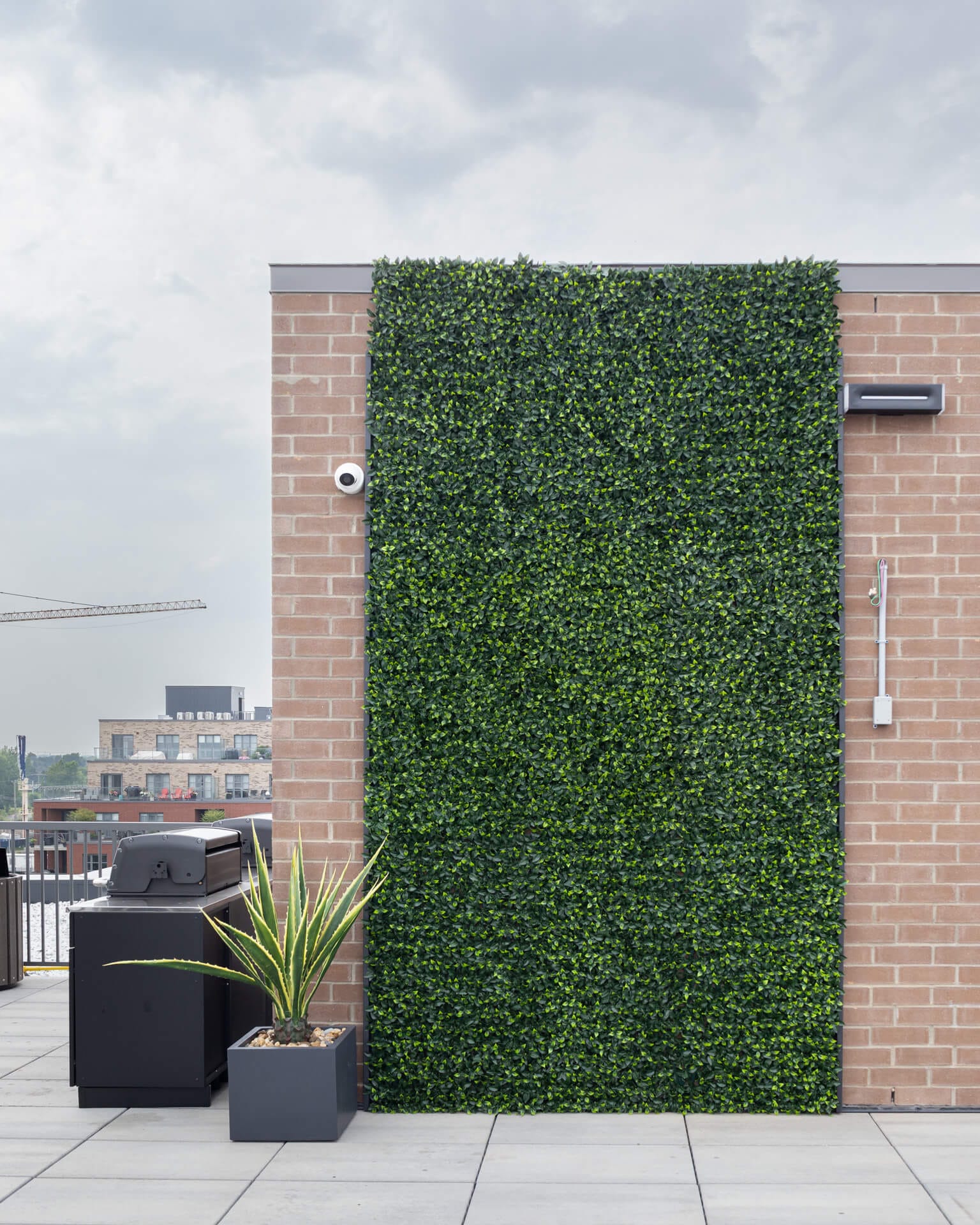 Using artificial greenery ensures a flawless, maintenance-free decor — an essential feature in a high-traffic space used daily by residents, visitors, and building managers. Among the highlights, the green wall immediately catches the eye. This spectacular installation is located in the complex’s common area.