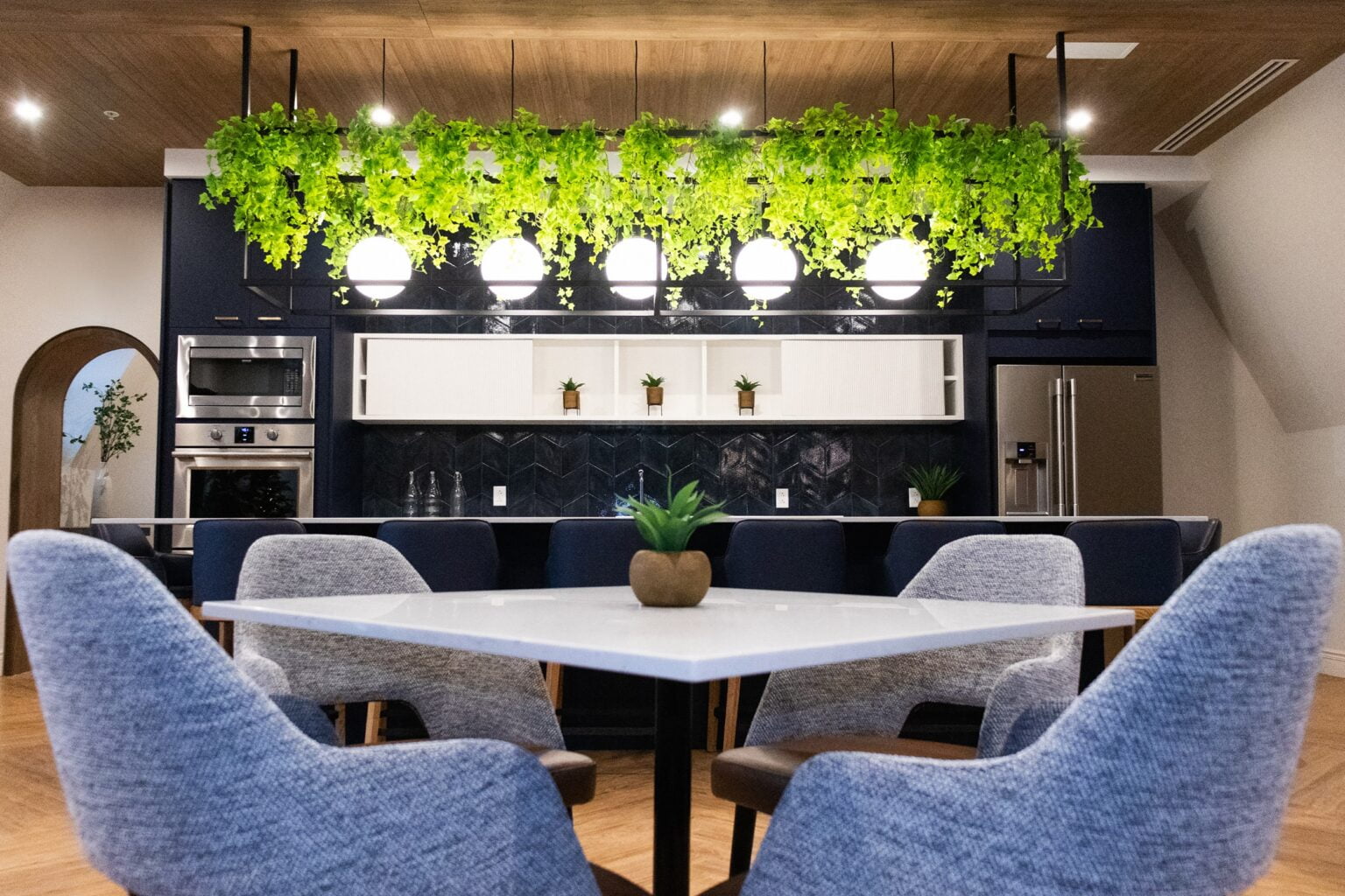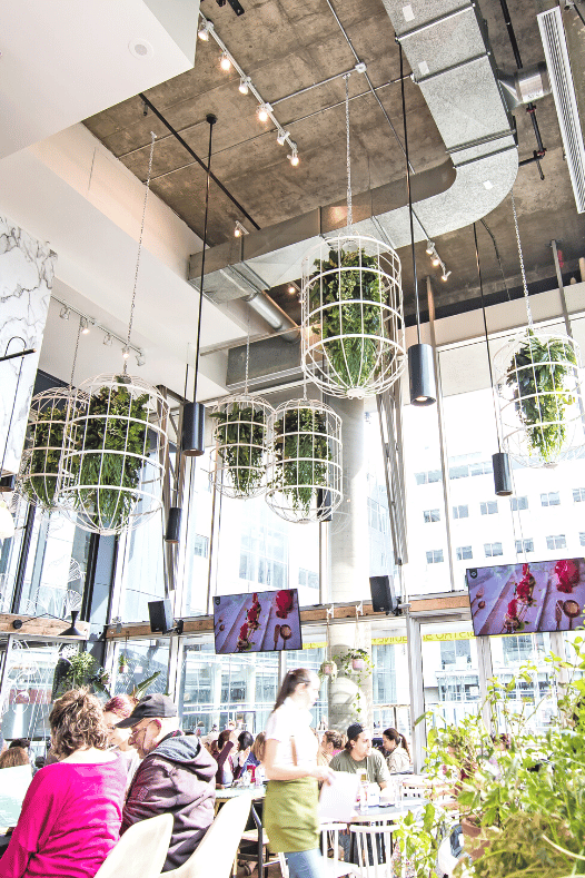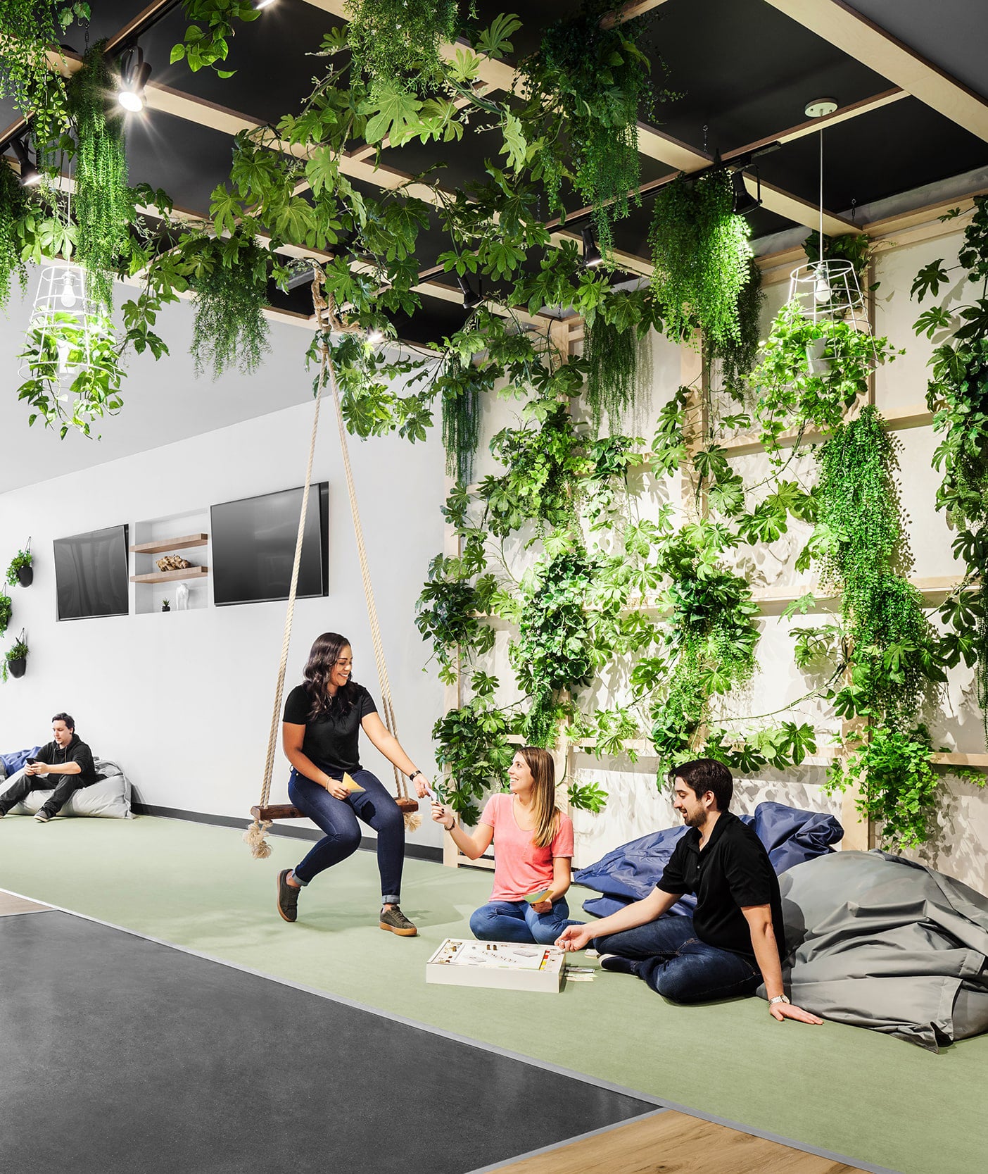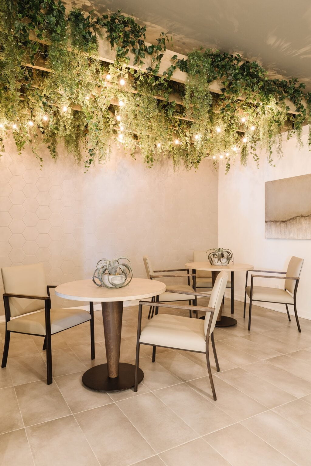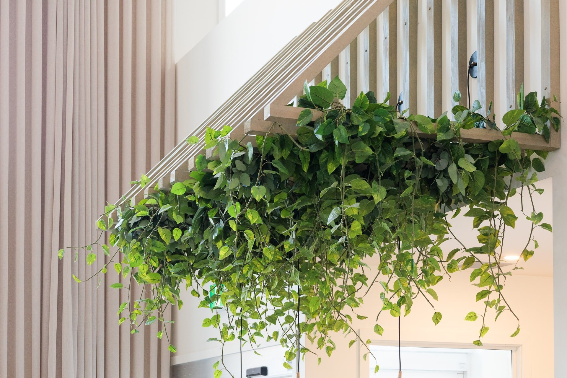 Plant suspension is a technique that involves installing trailing plants such as pothos or ivy in hanging containers, creating beautiful compositions in a space. It’s ideal for creating a lush waterfall effect in commercial interiors such as restaurants, stores and offices.