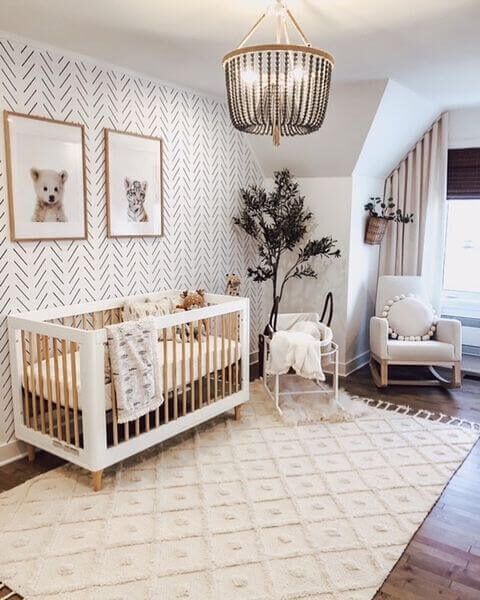 The bohemian baby room remains a favorite this year! With its round burlap rug and hanging plant incorporated into a basket, these are just a few examples of decorations that shape the boho style. Whether it’s for a girl or a boy, this room is within everyone’s reach, in addition of being affordable.