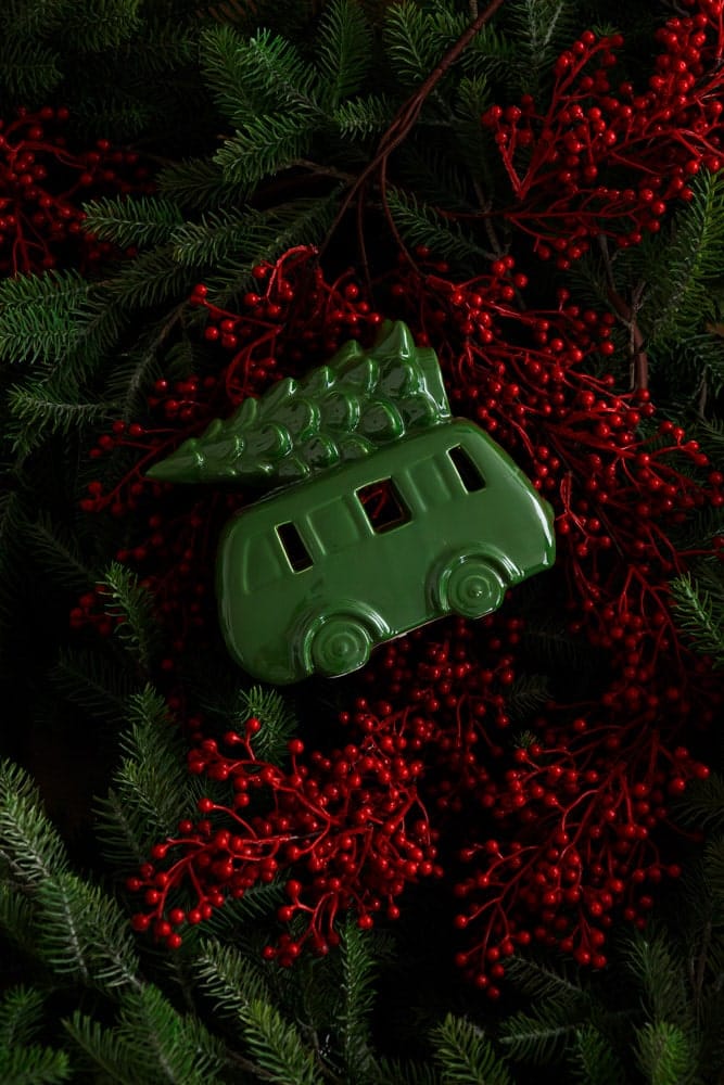 Pour les amoureux des décorations vintage, ce petit van vert rappelle les voyages et les retrouvailles en famille. Parfait pour compléter une décoration plus traditionnelle ou pour apporter un clin d’œil nostalgique, ce van est un élément charmant à ajouter à votre collection. Placez-le sur une table console ou sur une étagère pour un effet rétro assuré.