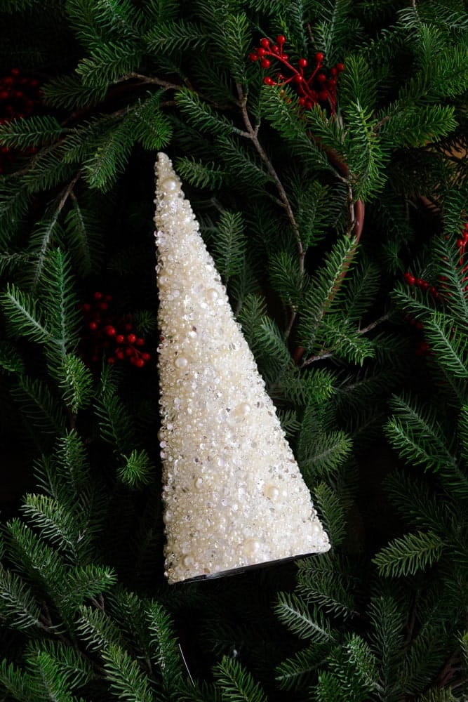 Si vous recherchez une décoration élégante et sophistiquée, le sapin perlé est fait pour vous. Recouvert de petites perles scintillantes, il capte la lumière et apporte une touche de brillance à votre espace. Parfait pour orner une table ou une console, il est également un excellent choix pour ceux qui souhaitent une ambiance festive plus raffinée.
