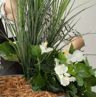 Décors Véronneau offre un grand choix d’arrangements floraux artificiels pour l’extérieur fabriqués à la main. Les fleuristes produisent des créations uniques. Que vous souhaitiez un grand arrangement au sol ou un centre de table pour décorer la terrasse, tous les modèles peuvent être faits sur mesure en fonction de vos spécifications et dimensions (service sur mesure disponible en magasin).