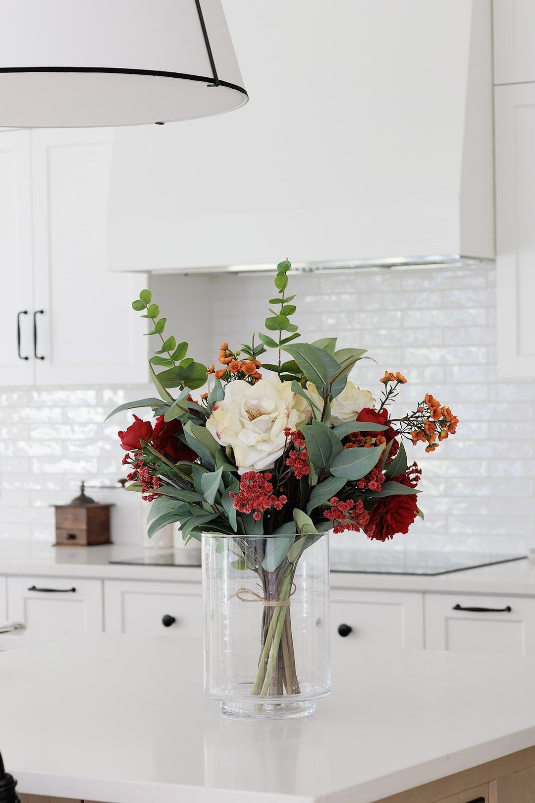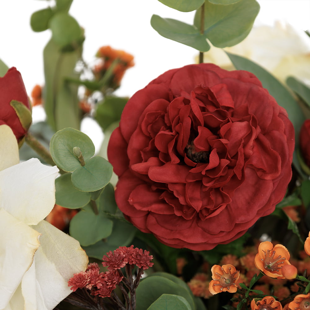 Cet éblouissant bouquet automnal artificiel en nuances de rouge et d’orange apporte la chaleur et la splendeur de l’automne dans n’importe quel espace. Un éclatant rappel de la beauté changeante de la nature, figé dans un vase.