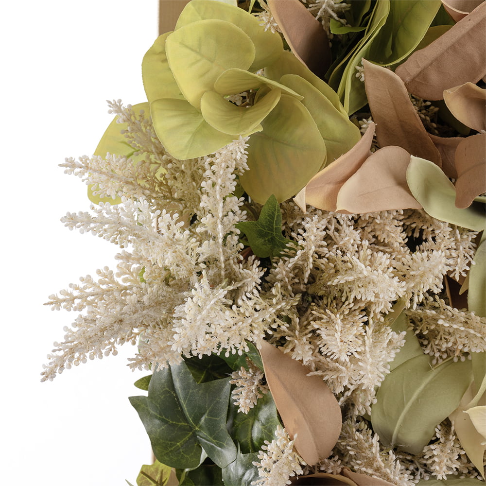 Mur végétal d’eucalyptus jaune et vert, 30 x 48″. Verdissez votre intérieur d’un mur de plantes artificielles sans entretien ! Formé de feuilles d’eucalyptus colorées, ce cadre végétal comblera tous les espaces blancs dénués d’intérêt. Le cadre du mur est en bois blond naturel. Veuillez noter que tous nos arrangements ne sont pas nécessairement disponibles en magasin, car ils doivent au préalable être confectionnés par nos fleuristes. Pour un besoin le jour même, il est préférable de nous appeler avant de vous déplacer. De plus, puisqu’il s’agit d’un arrangement confectionné à la main, la forme de celui-ci peut varier légèrement.