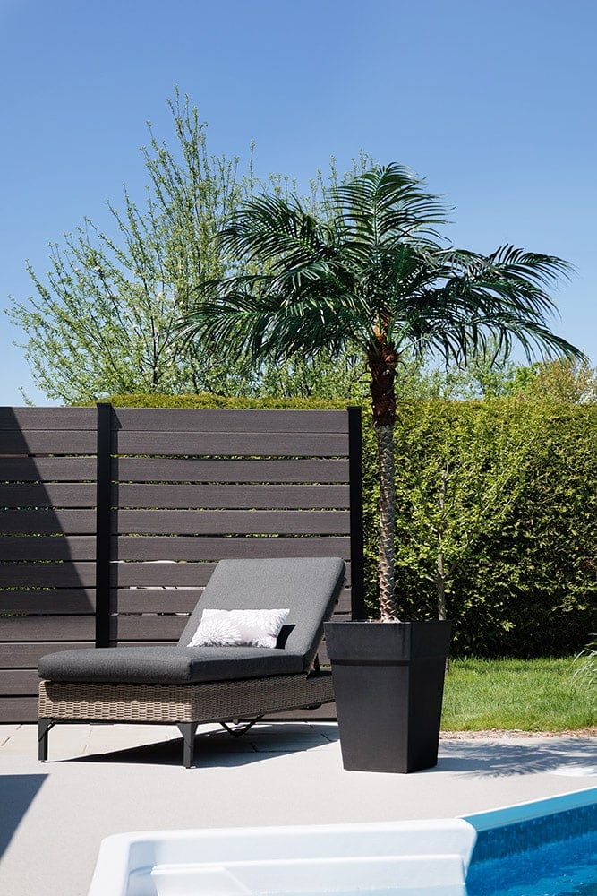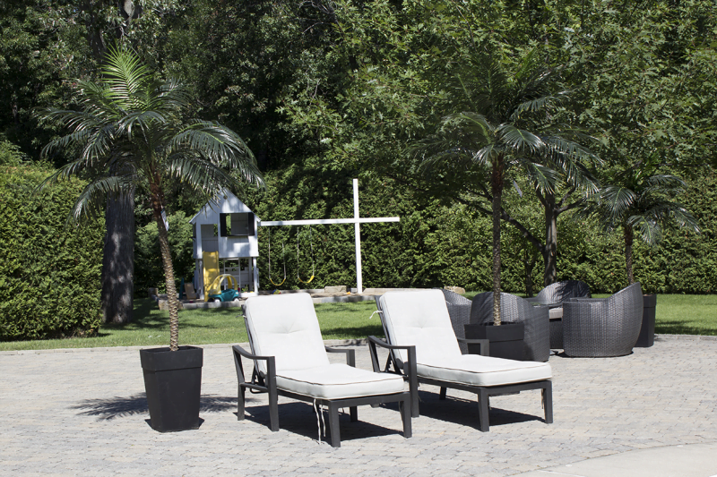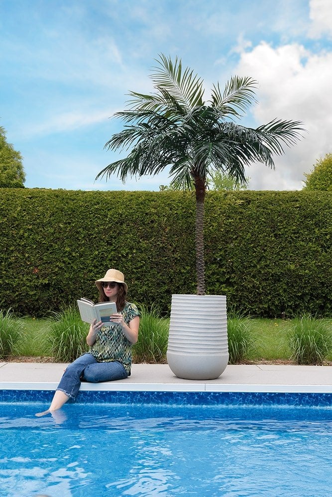 Palmier extérieur artificiel, phoenix, de 6 pieds de haut. Aviez-vous pensé à vous procurer un palmier artificiel à l’extérieur ? Vous pourrez ainsi le garder pour plusieurs étés à venir. Assurez-vous de vaporiser le spray UV sur votre plante artificielle extérieure à chaque début de saison pour allonger sa durée de vie. Également disponible en format de 9 pieds.