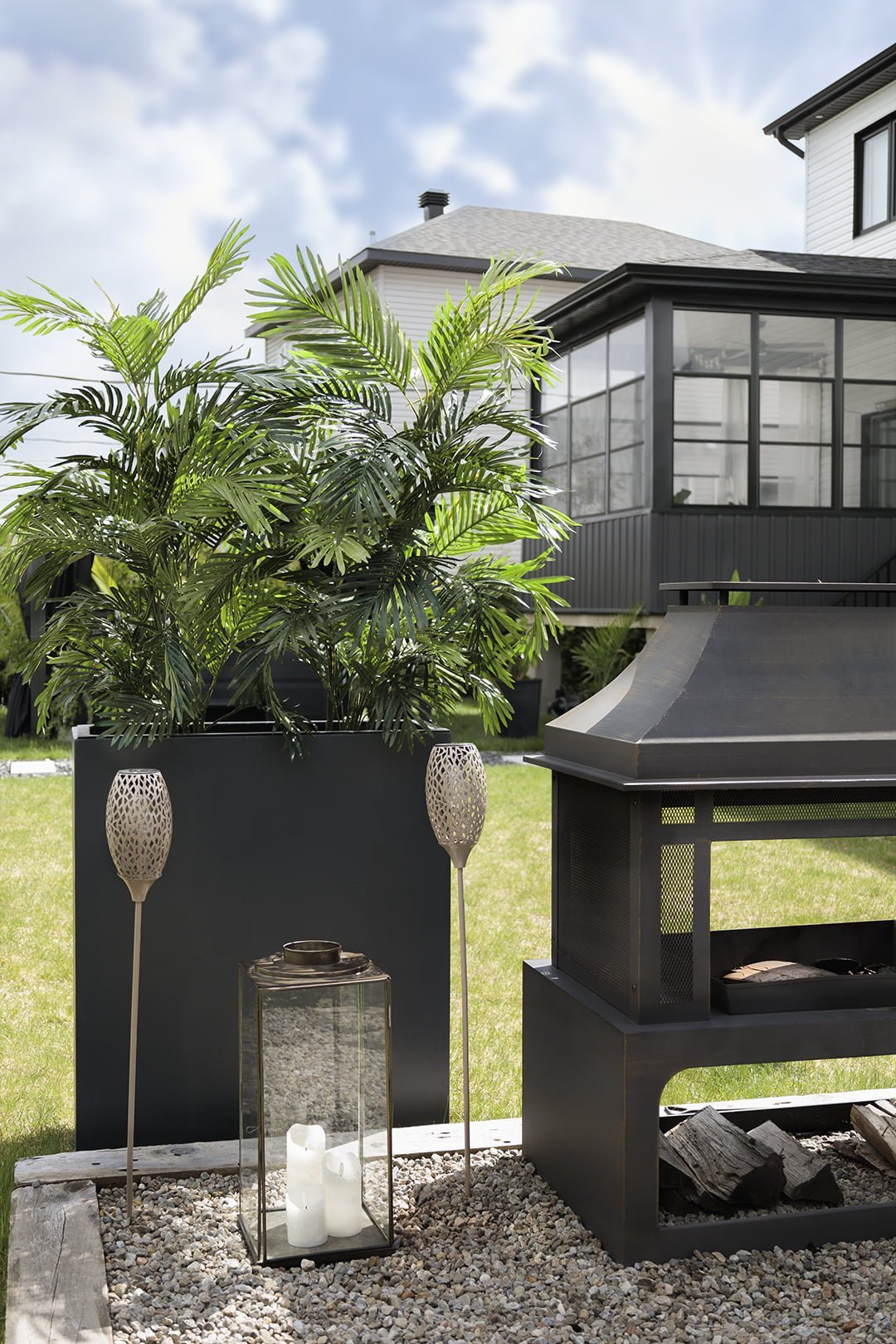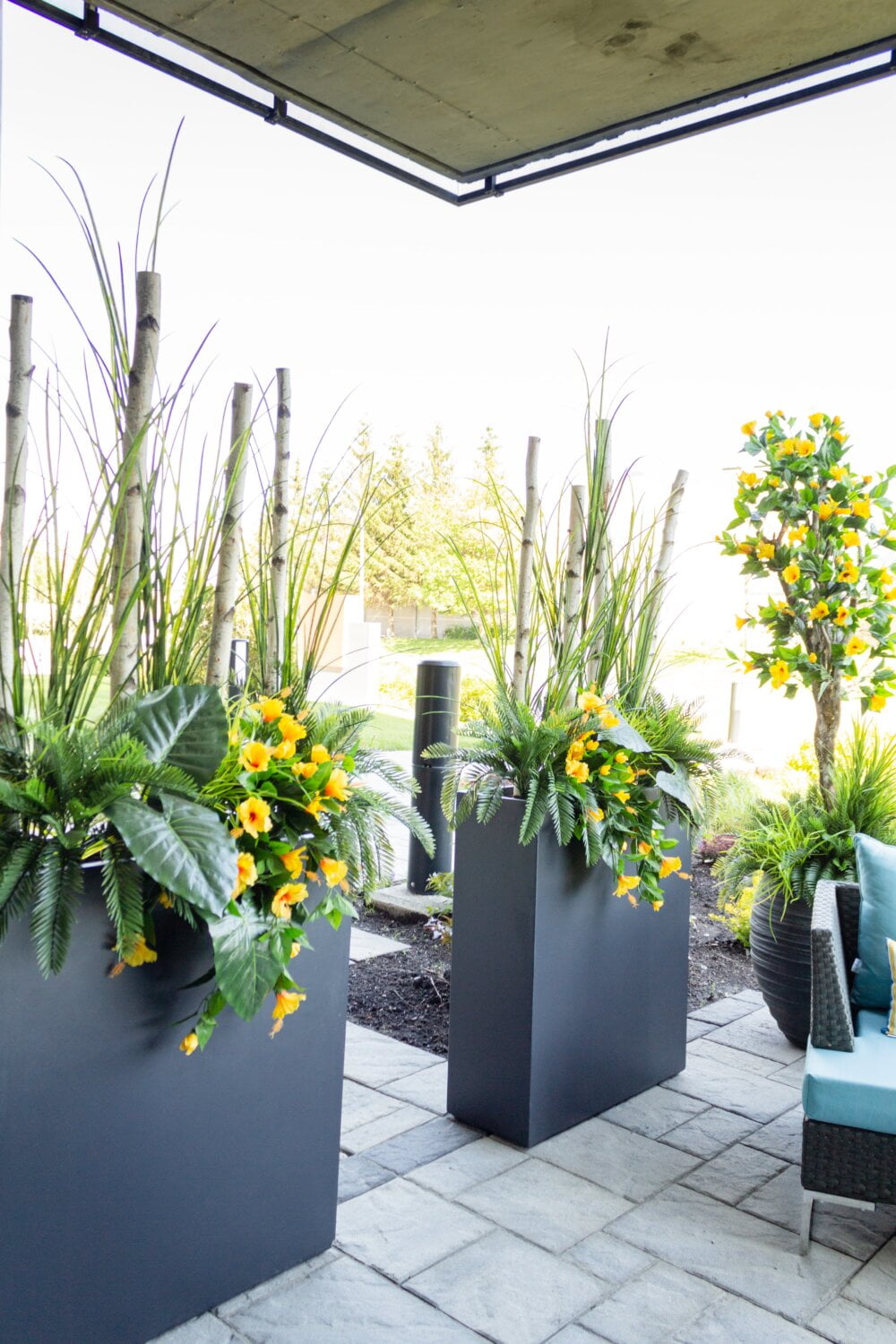 Bac rectangulaire noir en fibre d’argile. L’ajout d’herbes vertes ou de fougères permettra de créer un élément visuel très intéressant. Égayez votre maison de ce bac dans lequel vous pourrez aussi y mettre vos fleurs!
