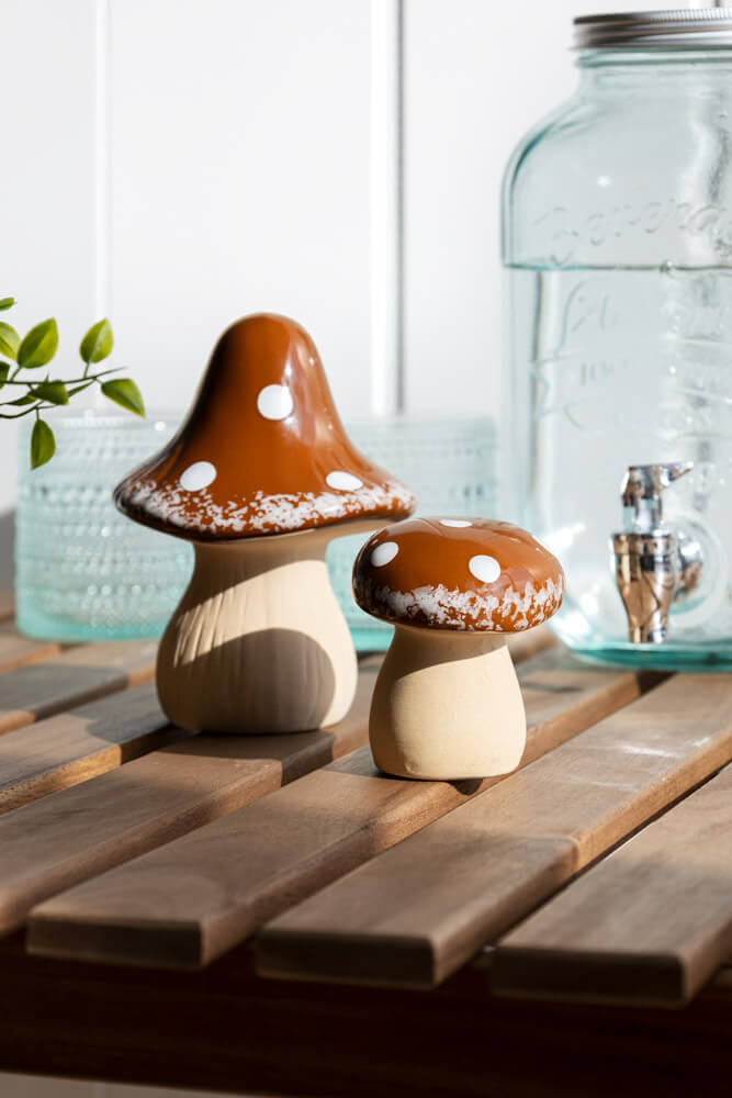 Qu’ils soient placés sur une étagère, une table ou dans un jardin, ces champignons fabriqués en porcelaine apportent une touche magique à tout décor. Ces sculptures de champignons aux chapeaux émaillés sont idéales pour apporter une touche amusante et fantaisiste à votre maison ou à votre jardin. Choisissez entre 4 couleurs (rouge, orange, brun ou jaune), prix unitaire.