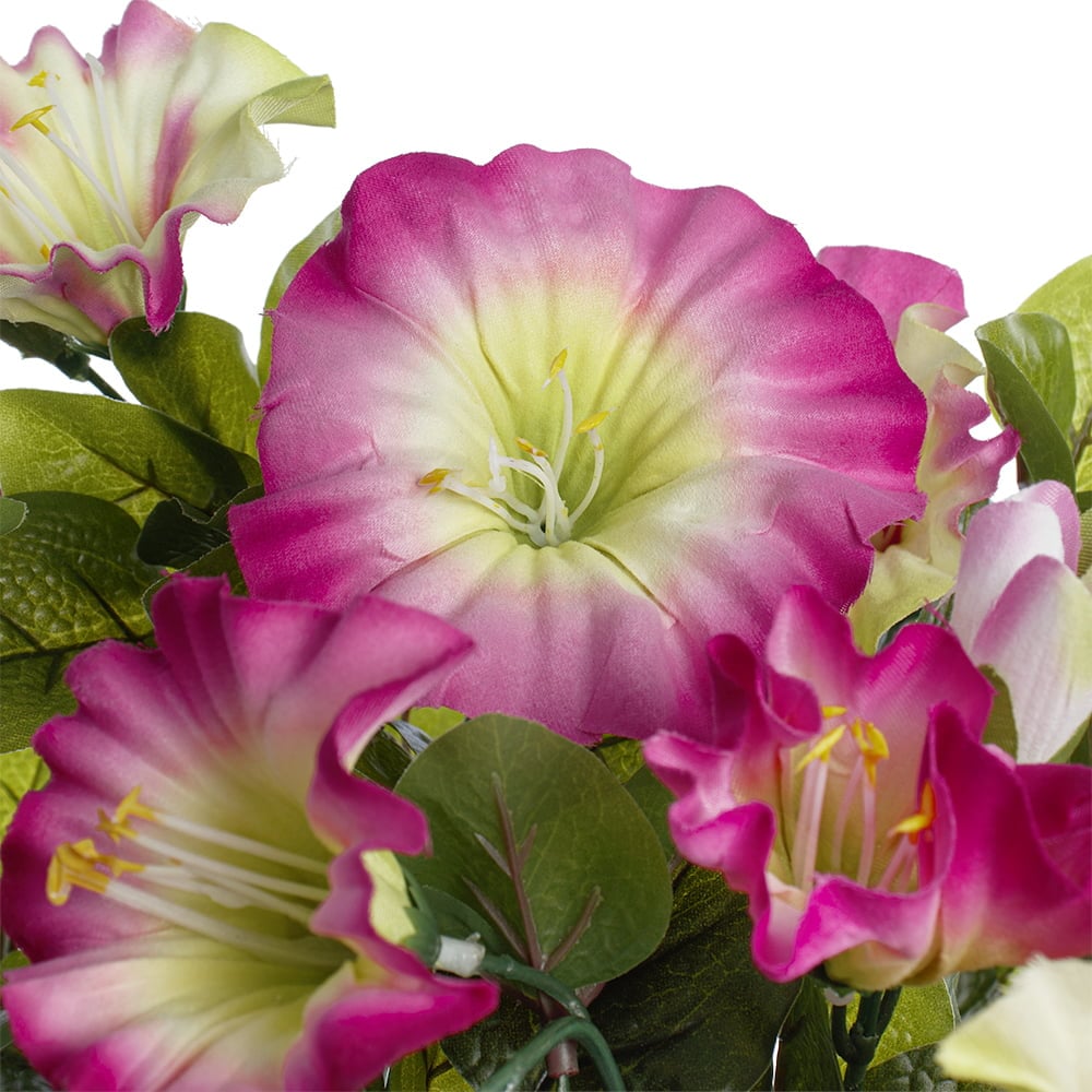 Pétunia en pot de culture noir, 22 x 12″. Ces fleurs artificielles pour l’extérieur offrent un magnifique dégradé de rose et de crème ! Elles auront fière allure sur la table de votre terrasse. Produit conçu pour l’extérieur traité contre la décoloration causée par les rayons UV. Déposez-le dans votre cache-pot préféré et le tour est joué.