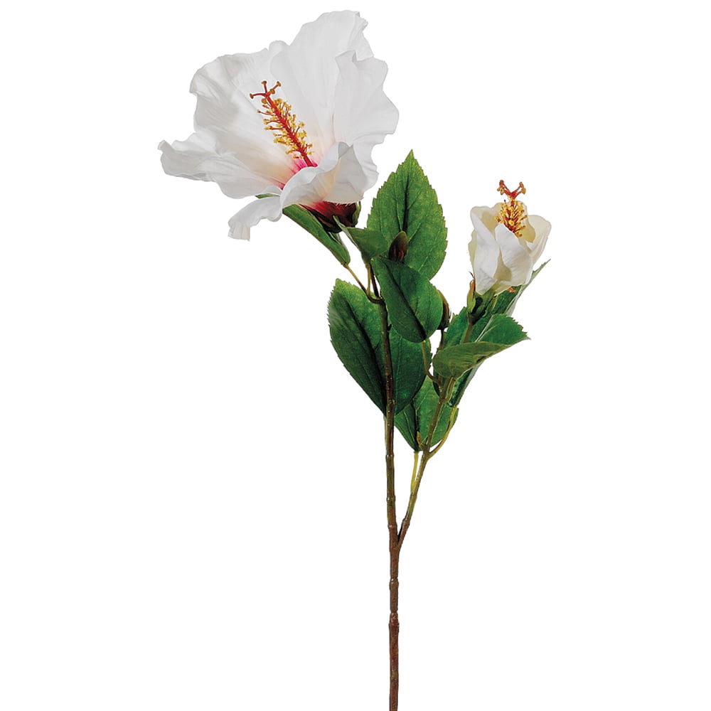 Fleur artificielle, hibiscus blanc, 26″. Plantez ces tiges d’hibiscus artificiel dans une jardinière intérieure pour profiter d’un jardin sans même devoir mettre un pied à l’extérieur ! Aussi disponible en jaune.