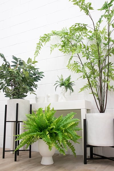 La fougère boston artificielle demeure un classique quand vient le moment de décorer avec des plantes ! Ce pic sera magnifique dans un pot aussi bien que dans une jardinière suspendue.