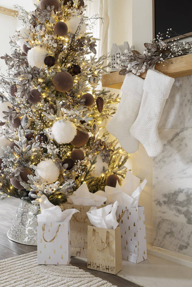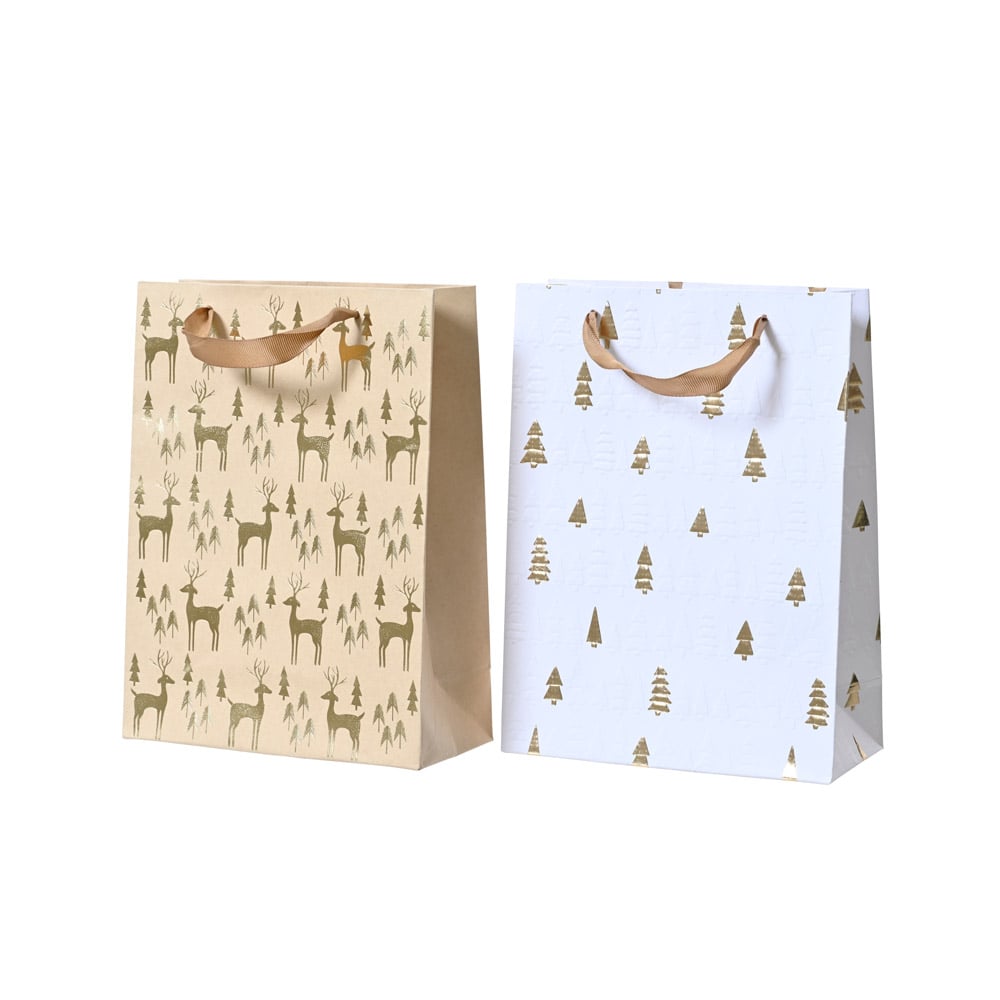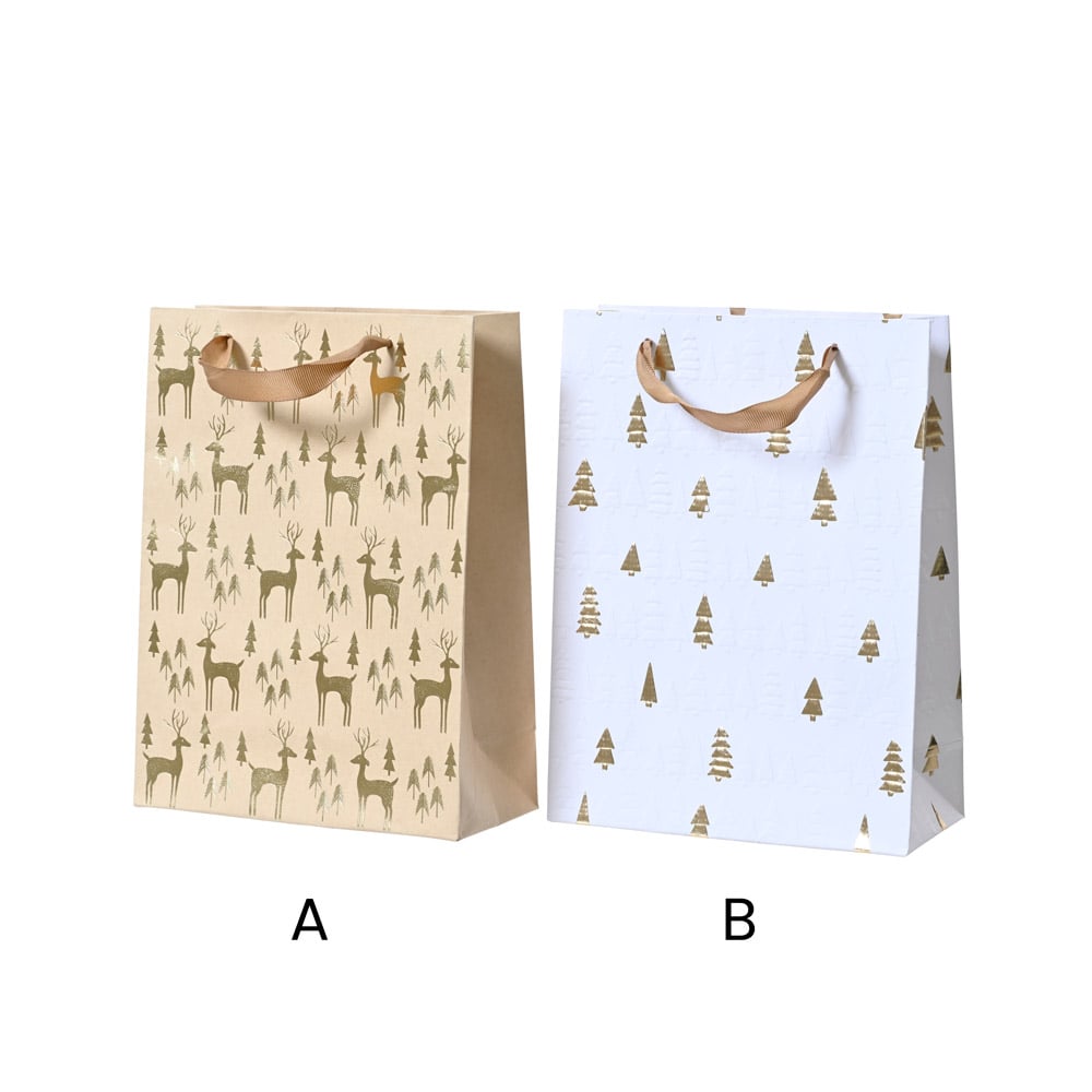 Avec ce sac-cadeau de Noël certifié 100% FSC, chaque présent devient encore plus spécial puisqu’il provient de papier provenant de forêts gérées de manière responsable et durable. Plus compact que son grand format, il est idéal pour emballer de petites attentions et les transformer en véritables surprises festives. Pensé pour accueillir des présents de petite taille : bijoux, accessoires, douceurs gourmandes, soins de beauté, mini bougies ou encore de petits jouets. Choisissez entre 2 modèles (crème avec motif de rennes ou blanc avec motif de sapins), prix unitaire.