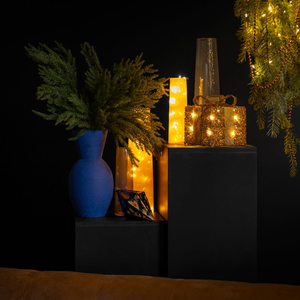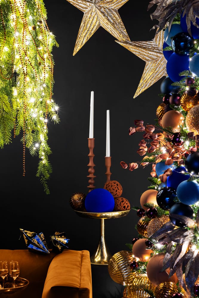 Ornement prisme bleu et doré, 8″. Avec sa combinaison de nuances de bleu et d’or, cet ornement de Noël crée un effet lumineux et étincelant lorsqu’il est exposé à la lumière. Complétez avec quelques boules de Noël dorées!