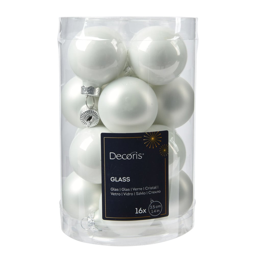 Boîte de 16 boules de Noël blanc perlé en verre, 1,5''