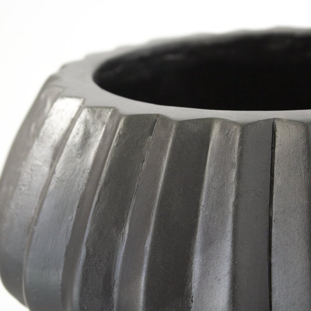Pot sur pattes bas mesurant 12 x 10″. Le contraste entre les pattes en bois clair et le pot noir en fait un modèle qui convient parfaitement aux intérieurs scandinaves.