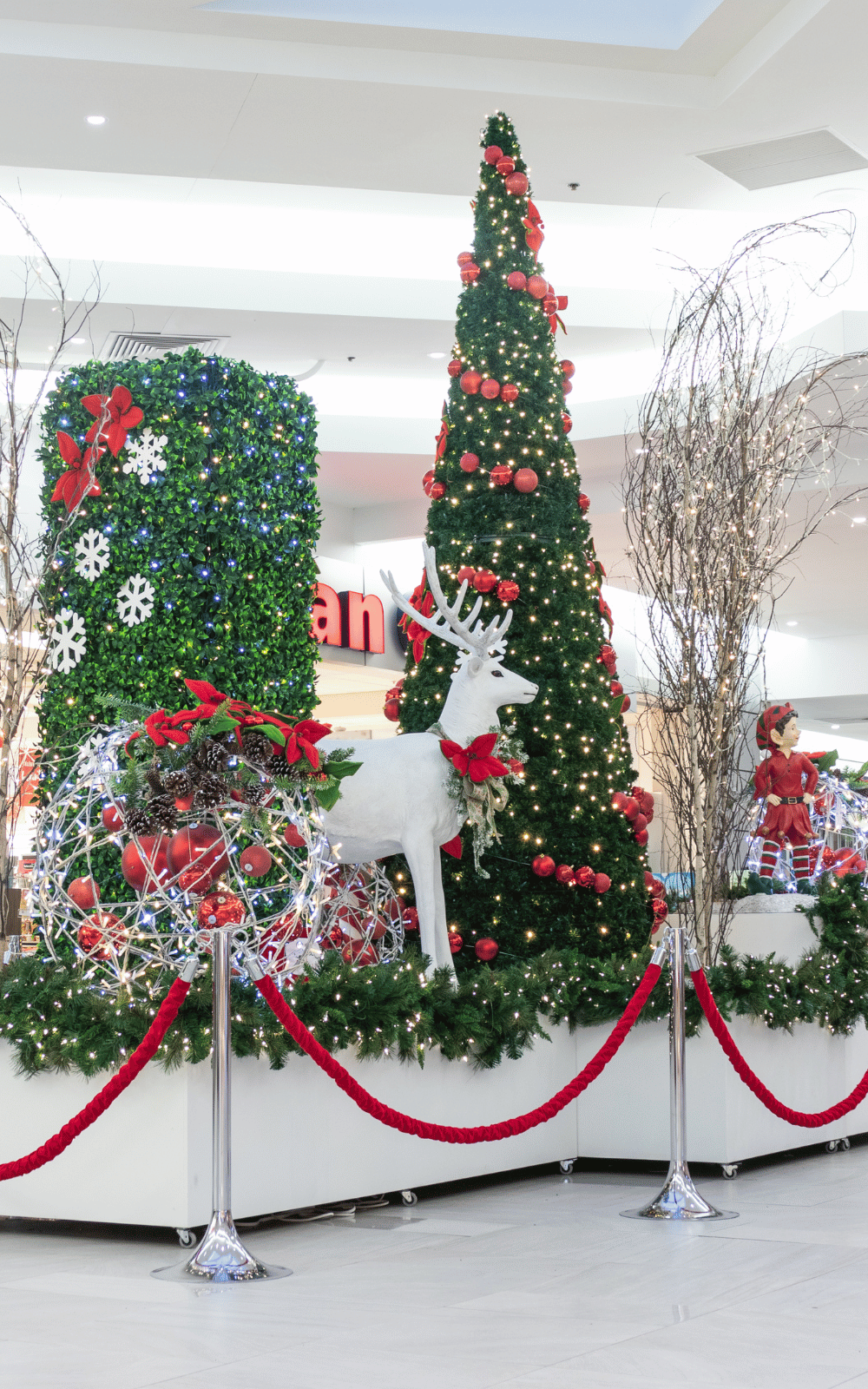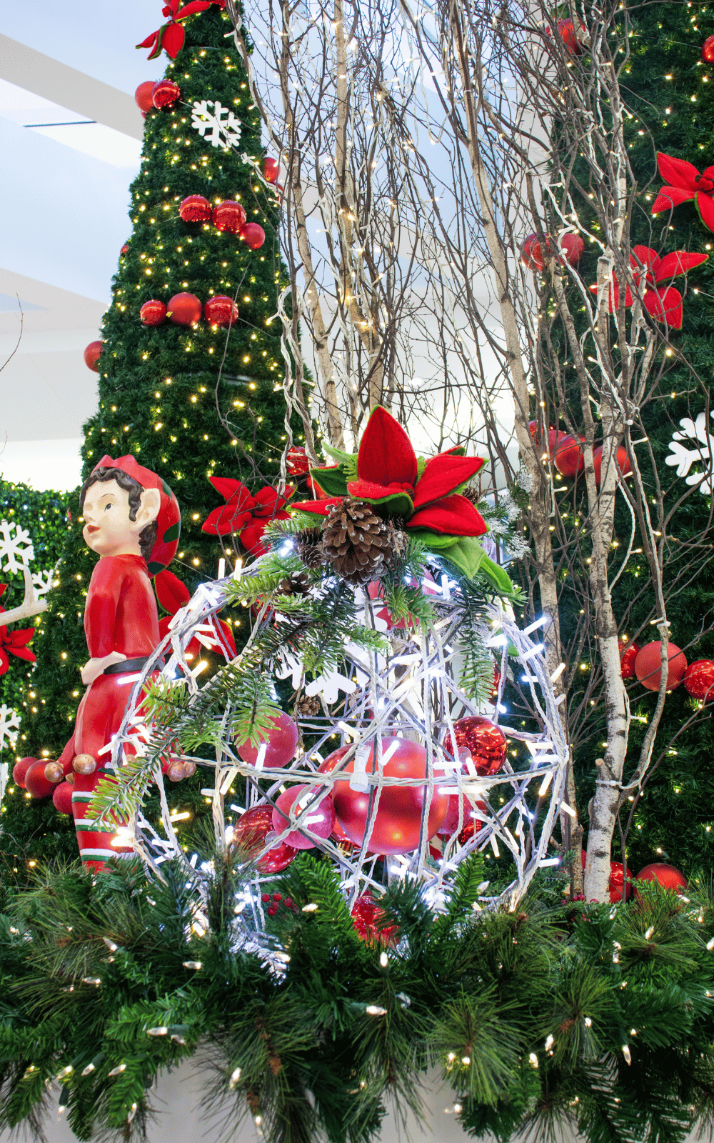 Conception de nombreux îlots de décorations de Noël au centre commercial Carrefour de la Pointe à Montréal. Plusieurs sapins, sphères, lutins, rennes et lumières de Noël ont été installés pour amuser petits et grands.