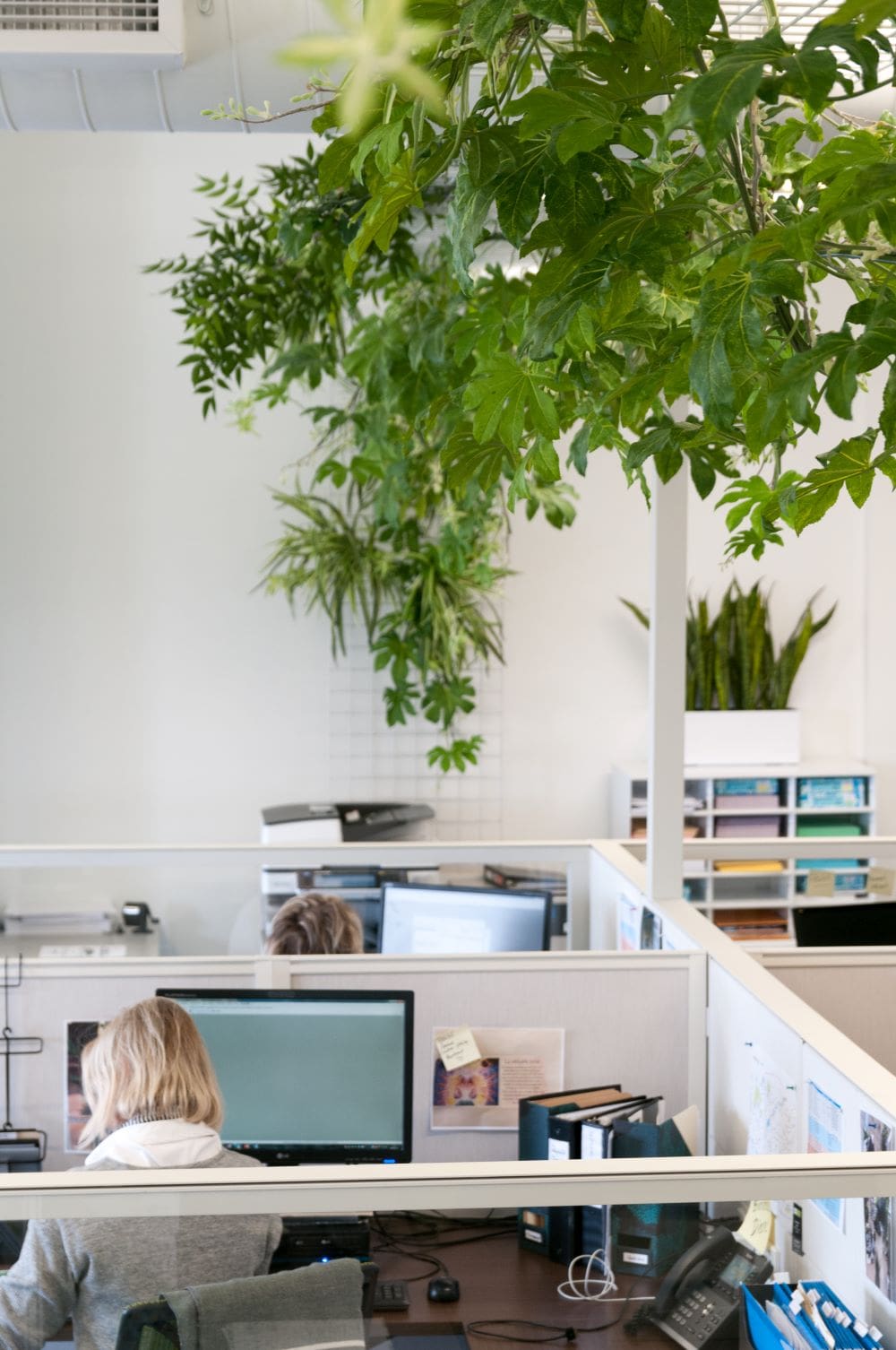 Réalisation de murs végétaux dans les bureaux du siège social de Décors Véronneau à Laval.